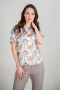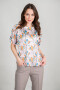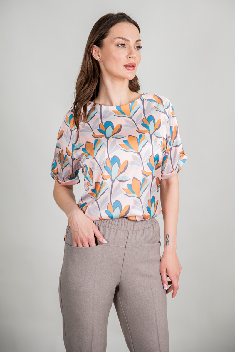 Блузка прямого силуэта. Цельнокроенный рукав с регулировкой на пату обработан отворотом. Боковые швы изделия обработаны разрезами.