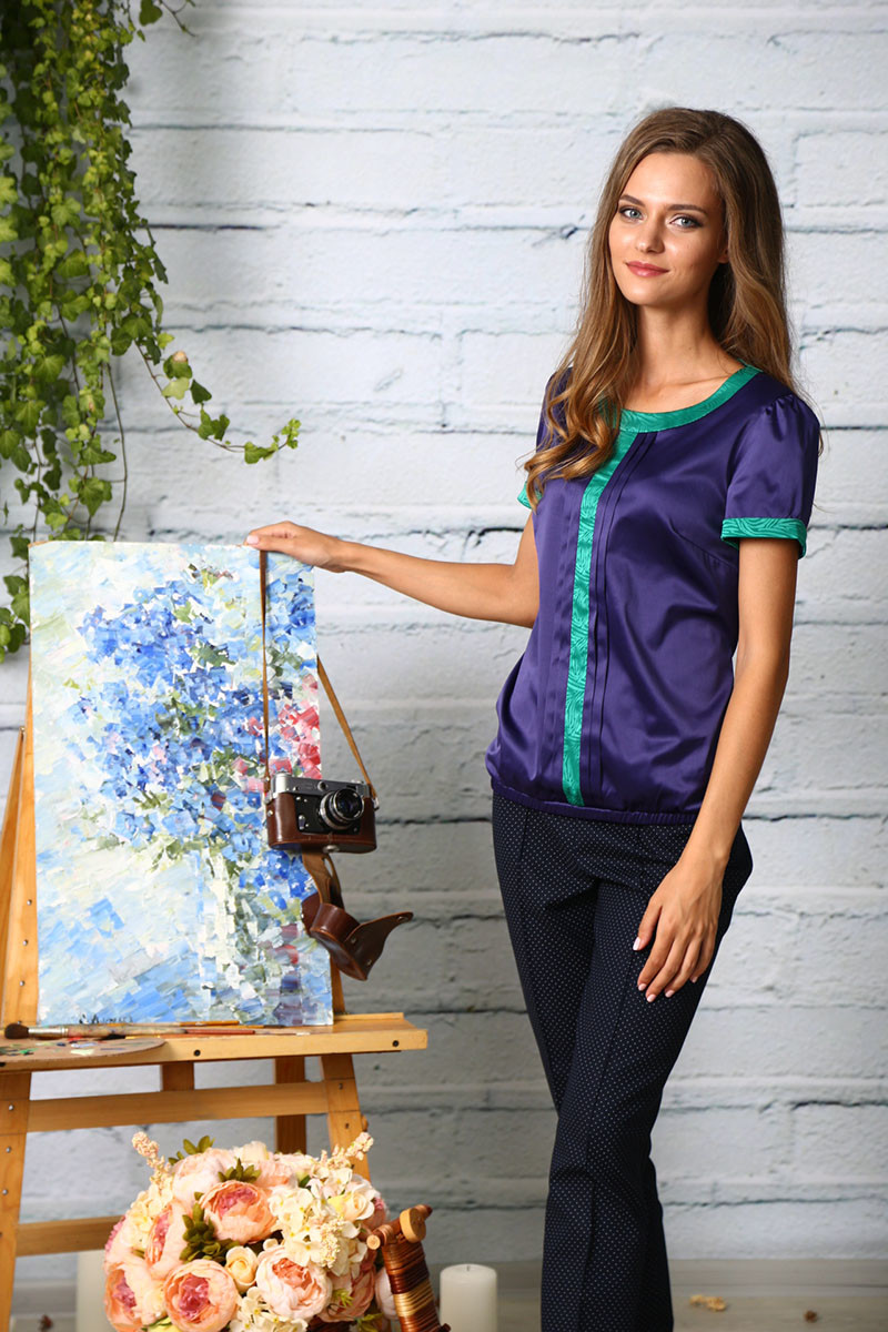 Блузка из атласа-сатина полуприлегающего силуэта.