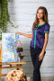 Рукава втачные, короткие, по низу отложная манжета т.синего цвета. Низ обработан поясом.
