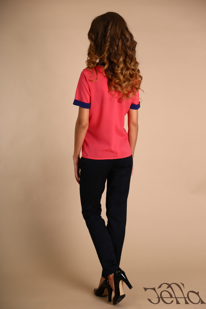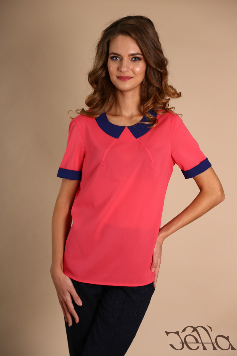 Блузка прямого силуэта с вшитым воротничком из отделочной ткани.