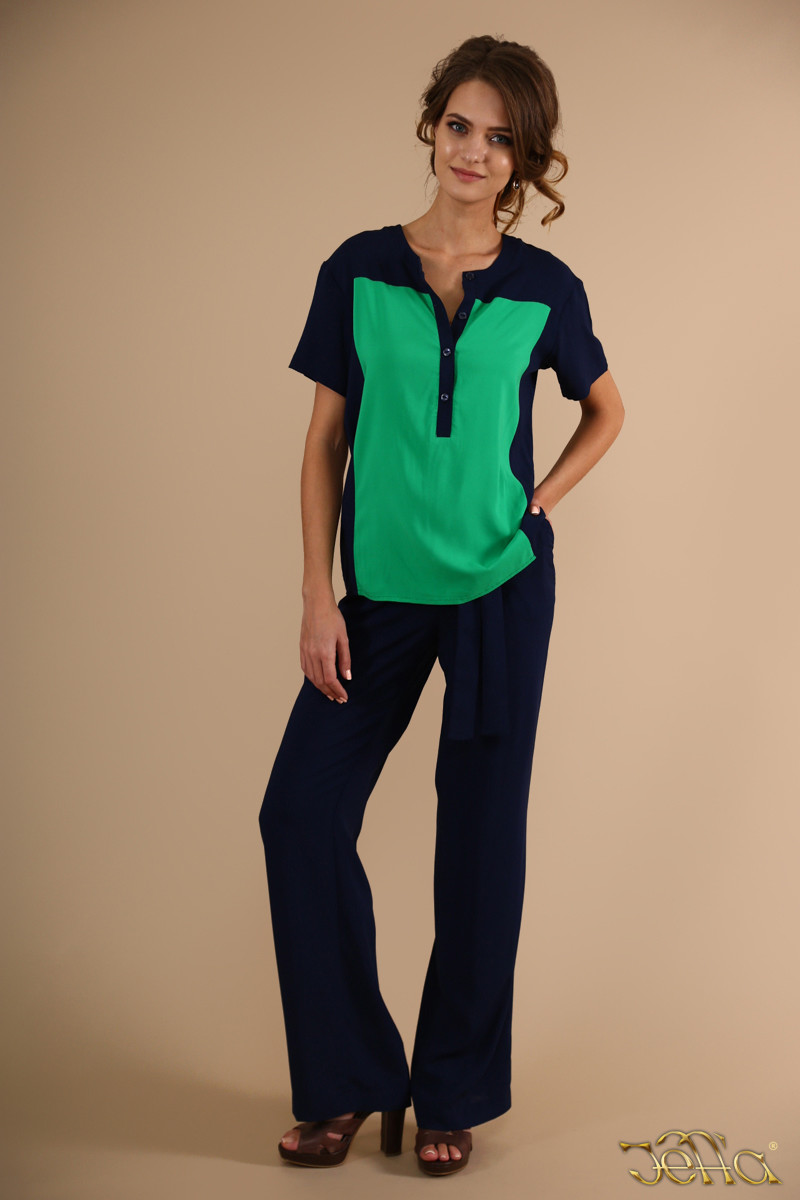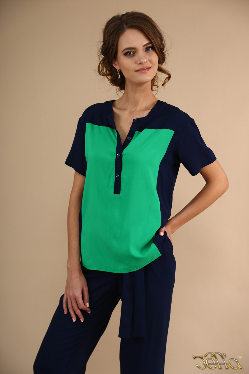 Рубашка из штапеля с яркими вставками по полочке и спинке.