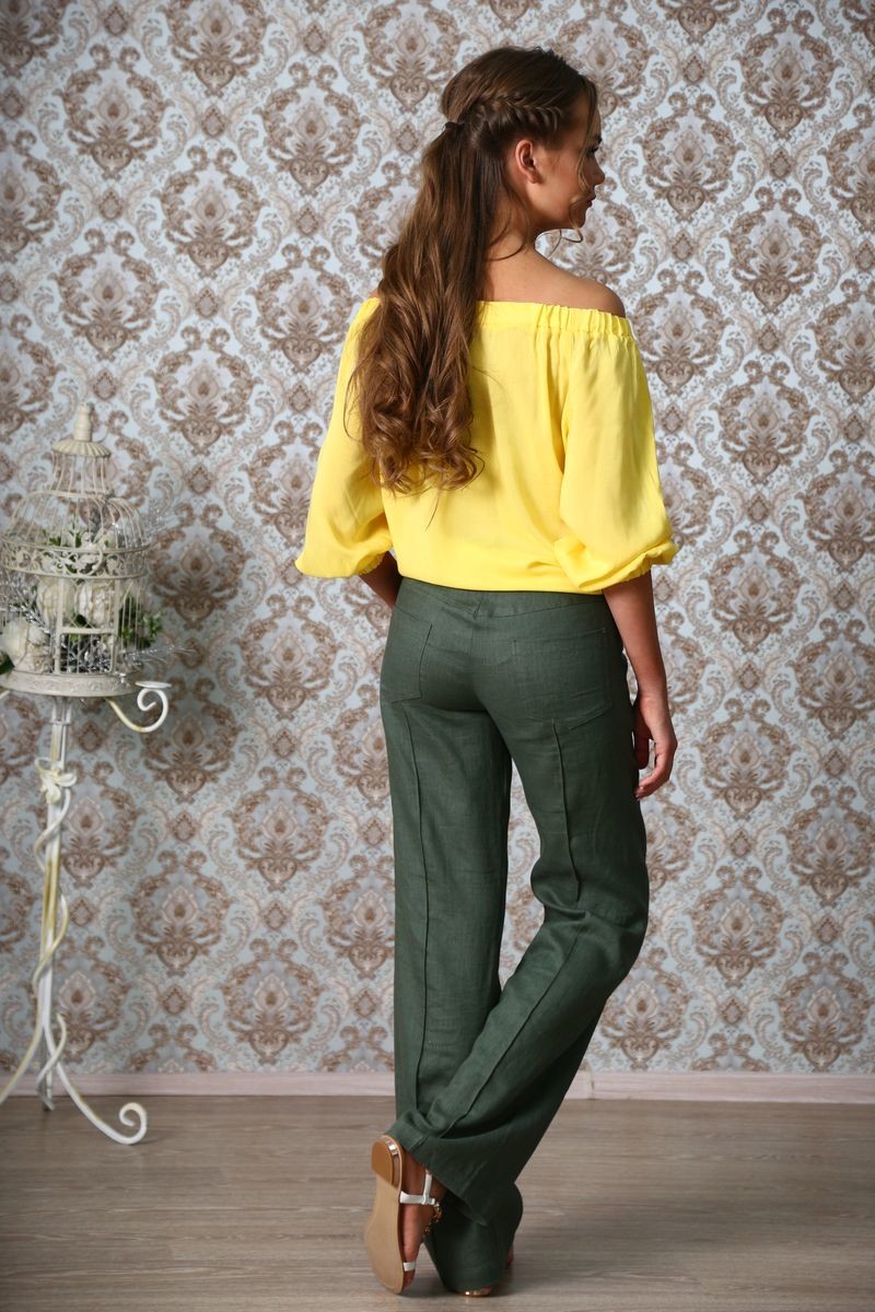 Блузка из штапеля с открытыми плечами свободного кроя.