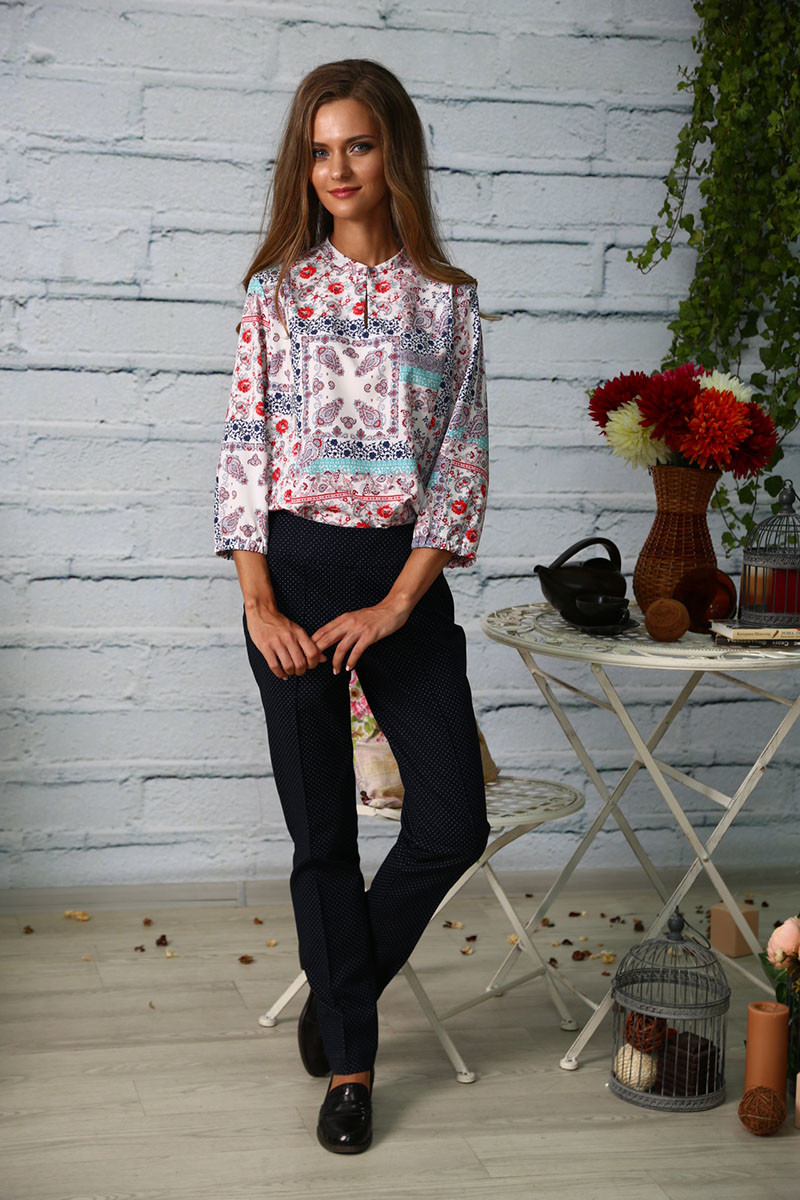Блузка прямого силуэта с втачным рукавом длиной 3/4.