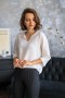 Стильная блузка из шелка-атласа прямого силуэта. Вырез горловины-галочка. Втачной рукав обработан отворотом.