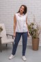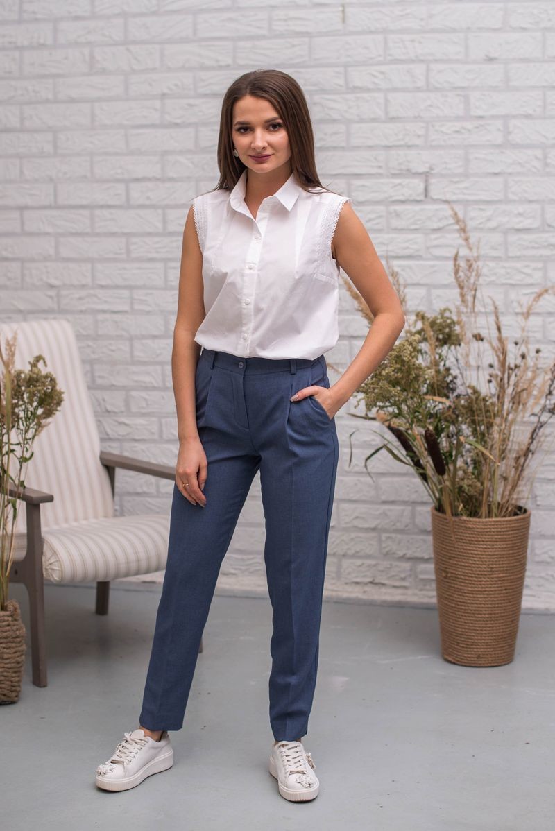 Блузка прямого силуэта из хлопка. Без рукавов. Проймы обработаны изящным кружевом. Прямой силуэт, отложной воротник, застежка на пуговицы по всей длине. Выточки в плечевых швах. Блузка отлично подойдёт на любое время года и прекрасно дополнит офисный или повседневный образ.