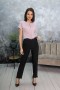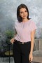 Блузка прямого силуэта с коротким рукавом. На полочке декоративная планка. Застежка на петлю и пуговицу на спинке.