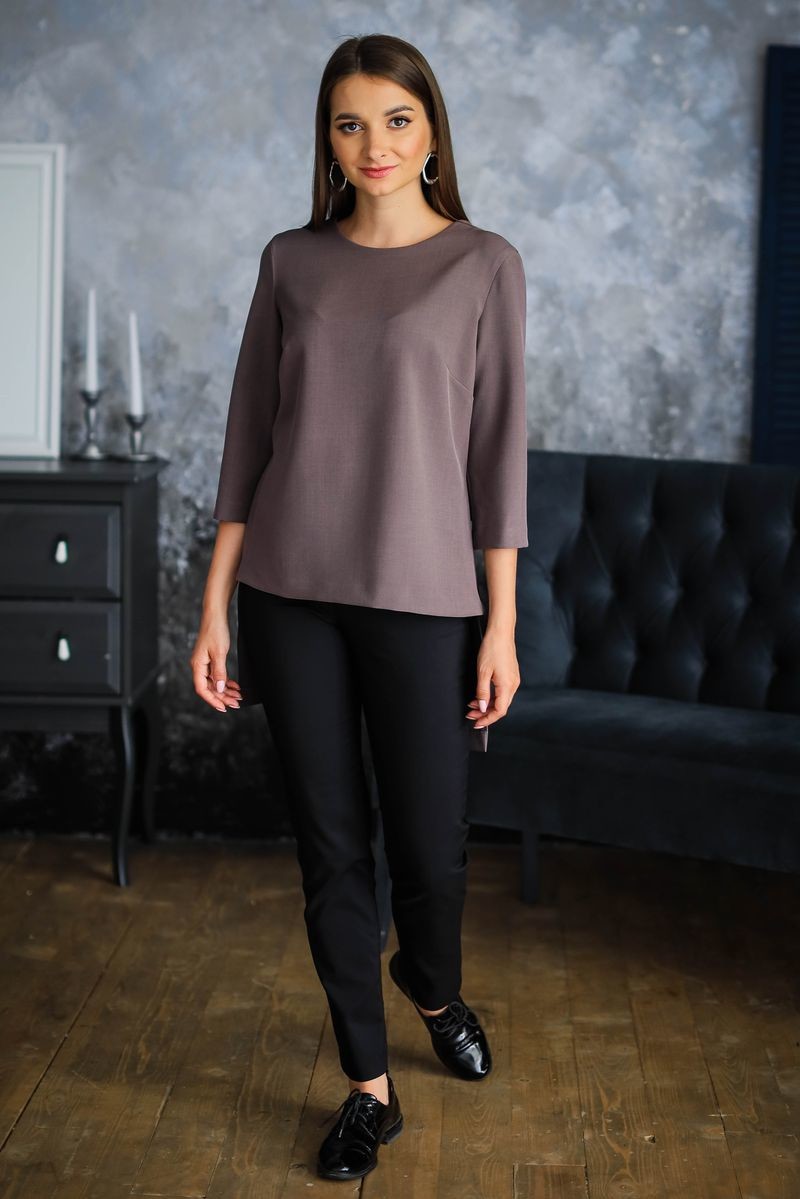 Оригинальная туника с перепадом длины. Прямой силуэт. Спинка удлиненная, из двух полотен.