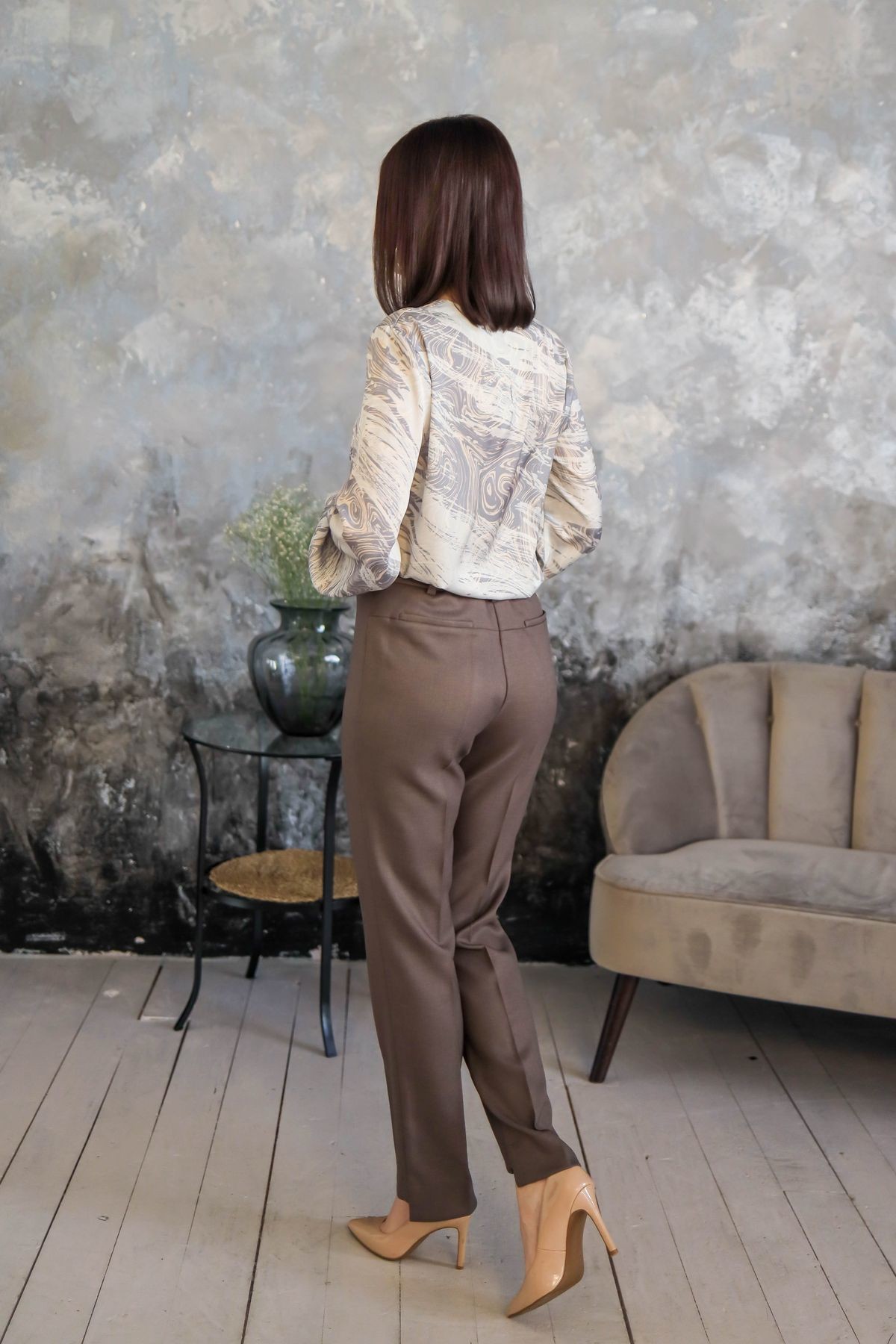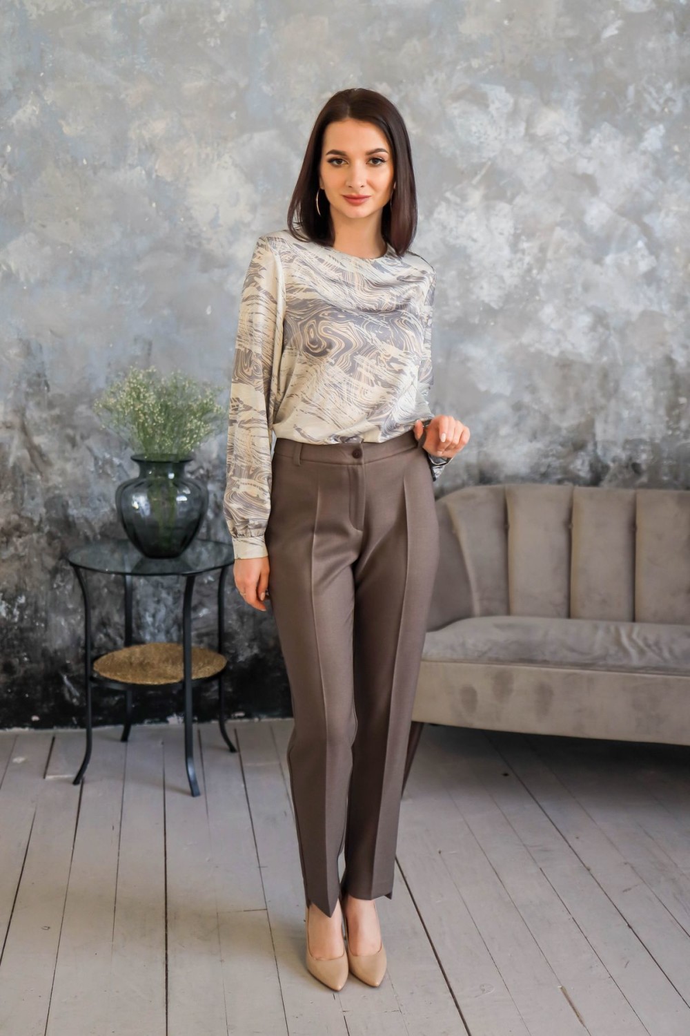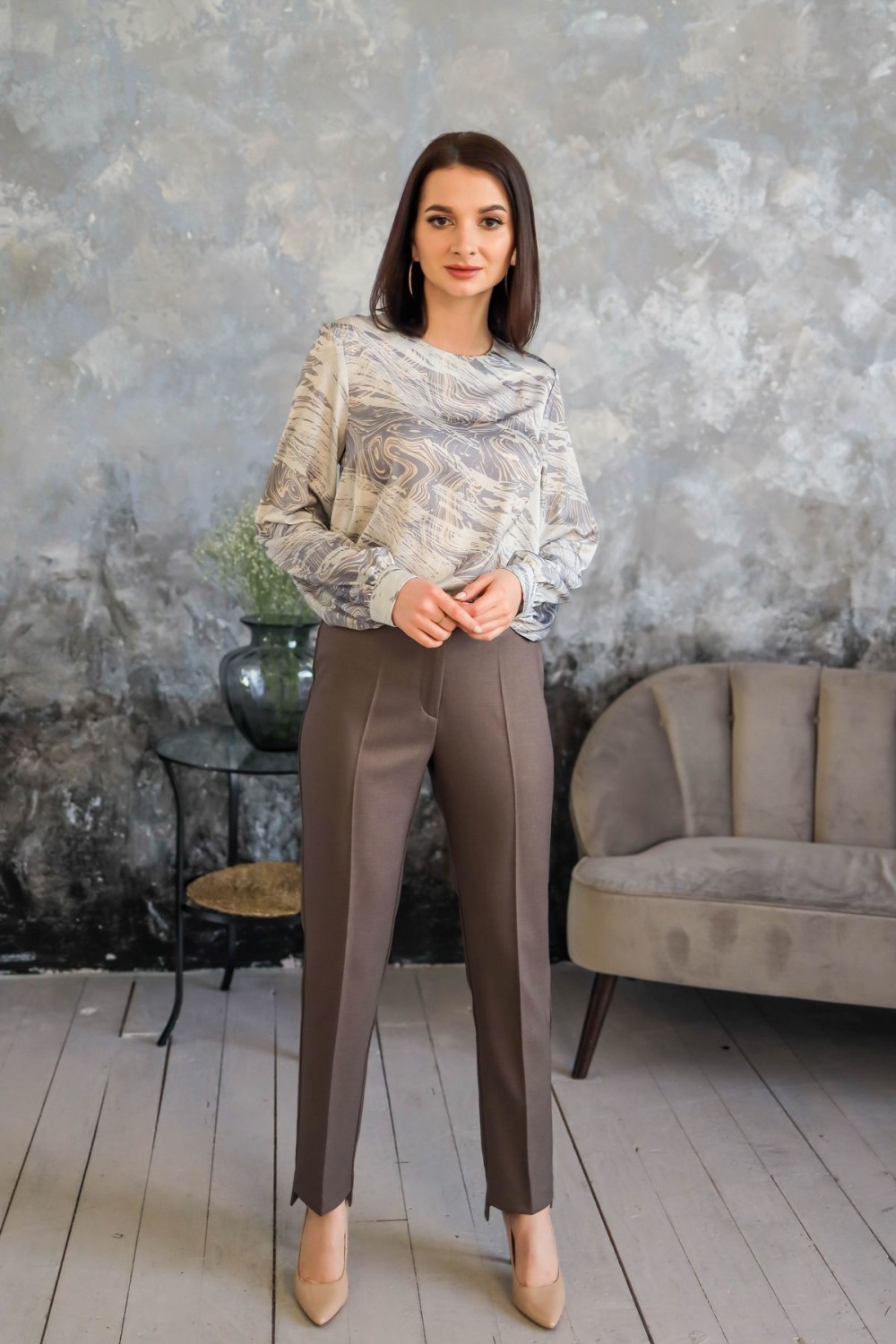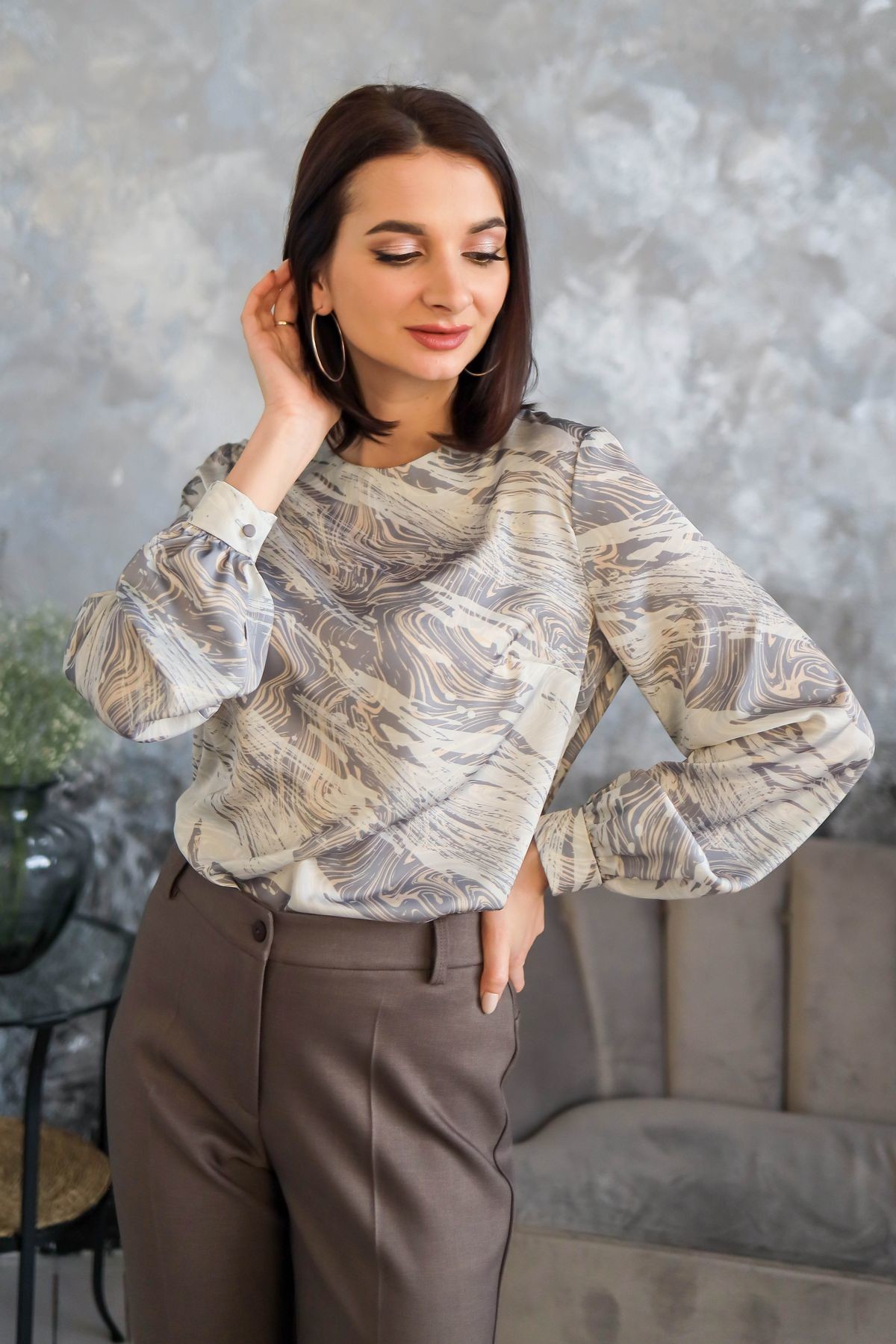 Элегантная шелковая блузка прямого силуэта. Пышный втачной рукав обработан манжетой. Сзади застежка на петлю и пуговицу.
