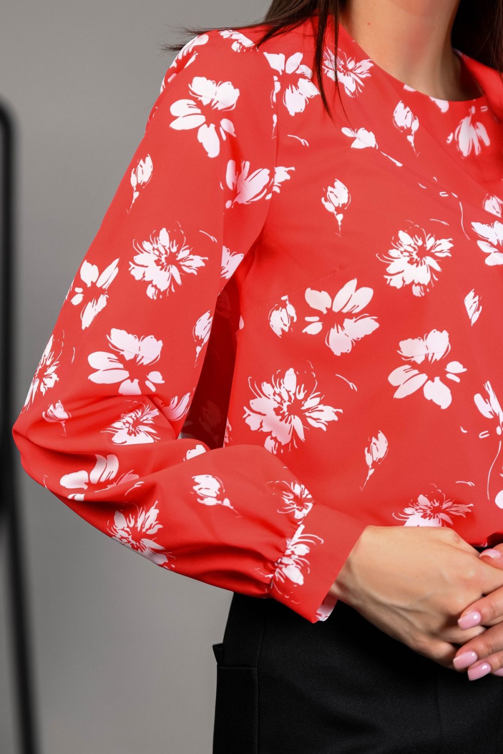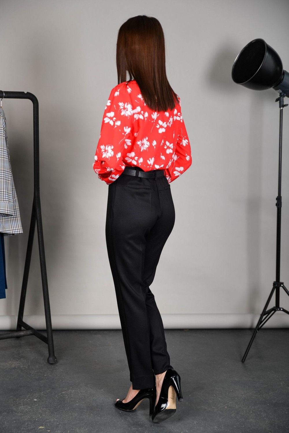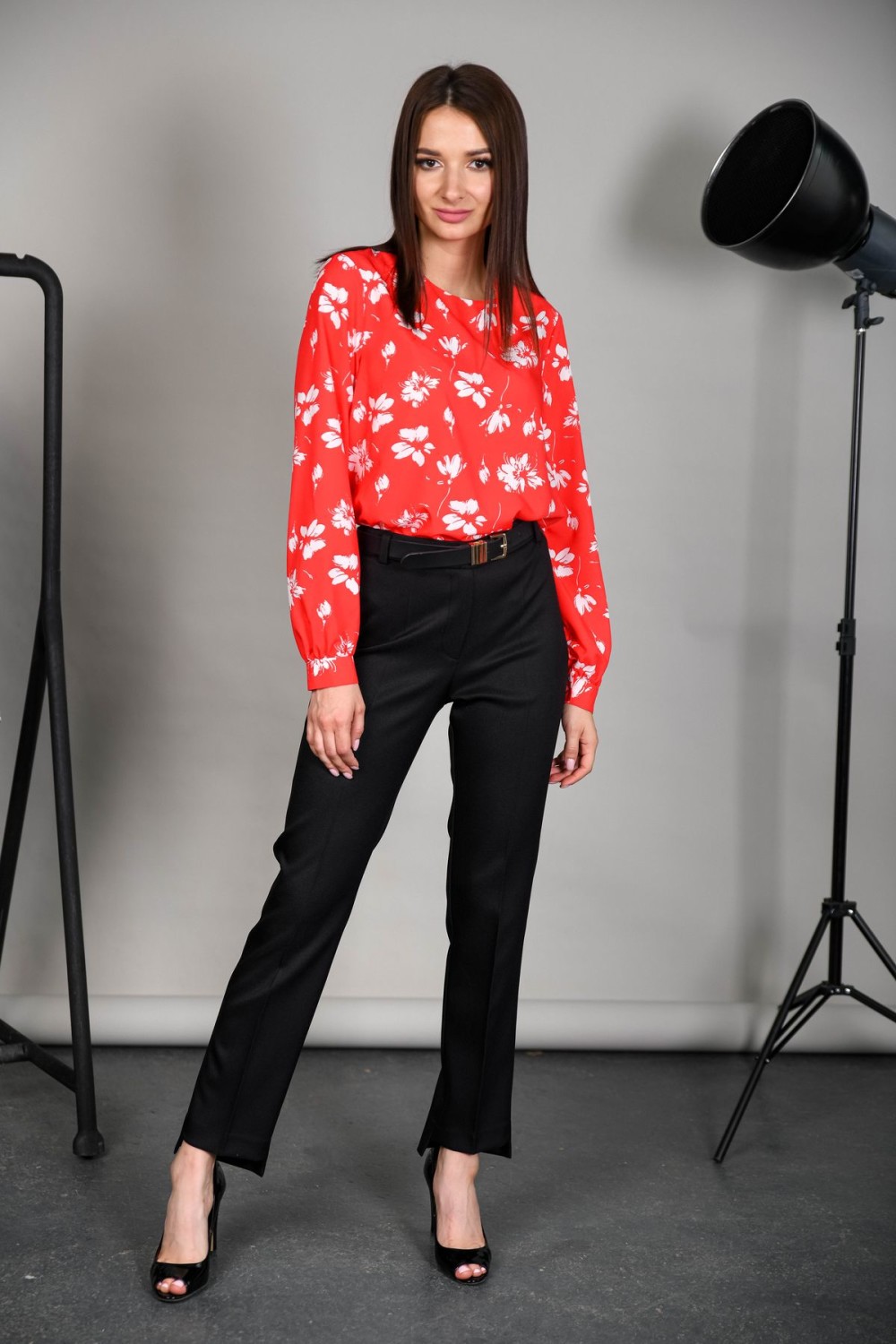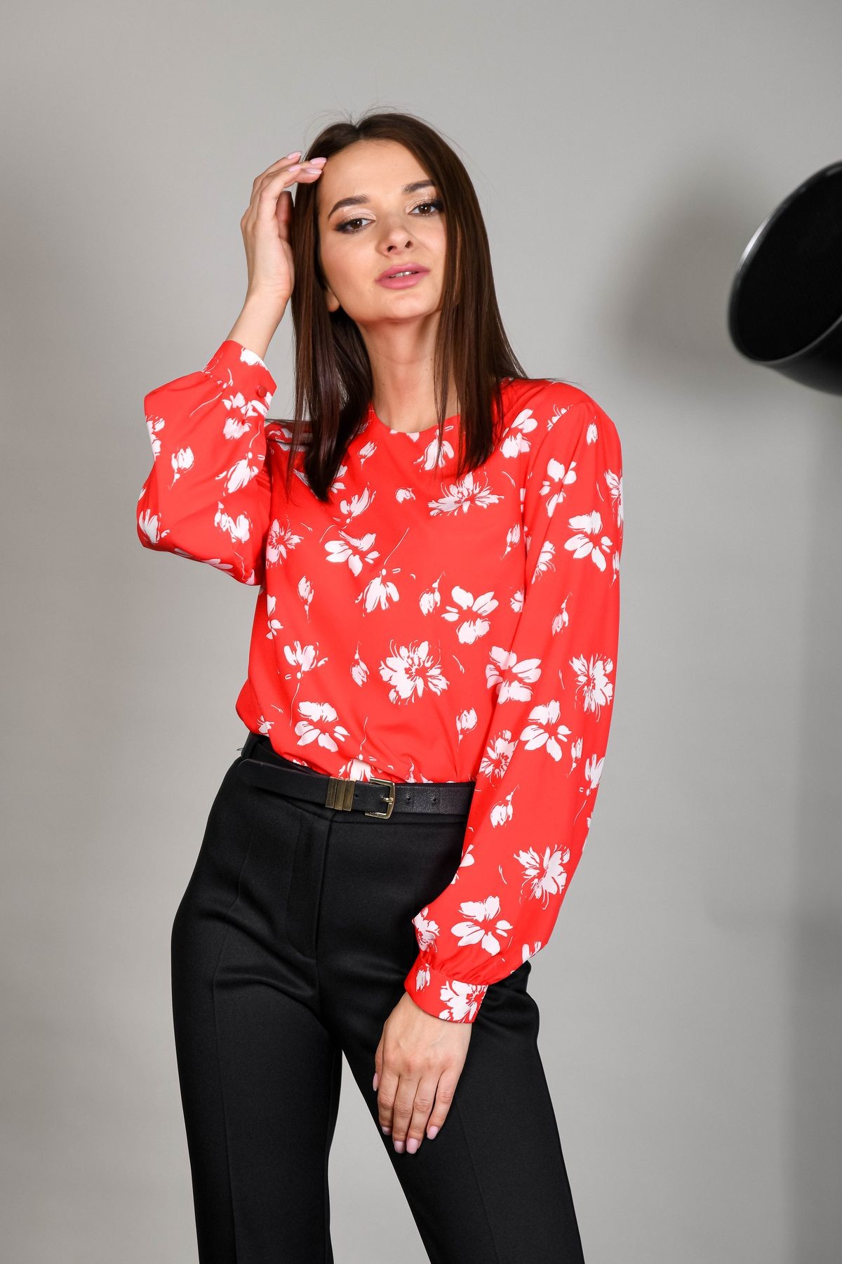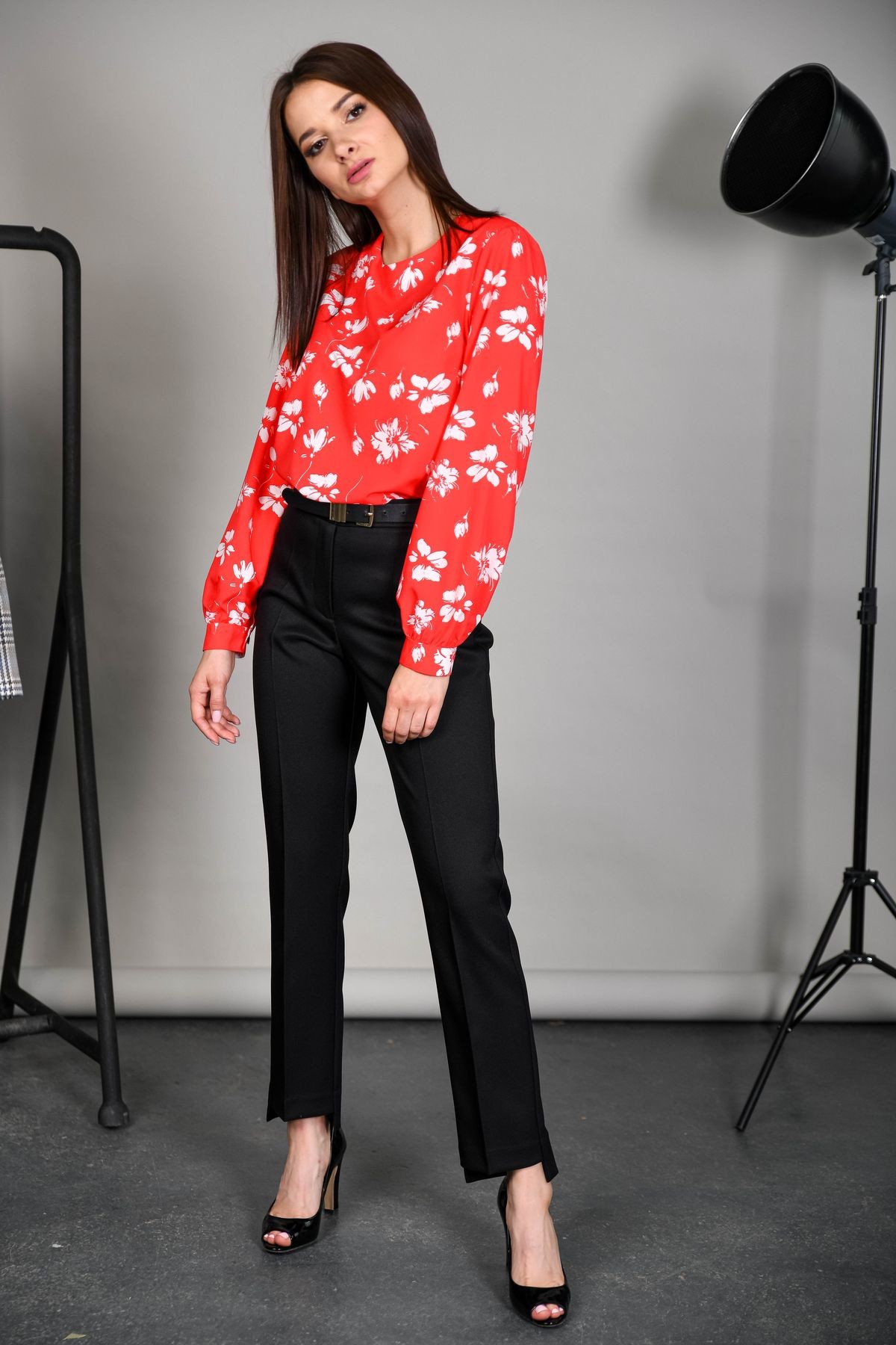 Элегантная шелковая блузка прямого силуэта. Пышный втачной рукав обработан манжетой. Сзади застежка на петлю и пуговицу.