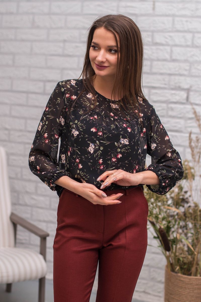 Блузка из шифона прямого силуэта с лаконичным цветочным принтом. Втачной рукав, застежка на спинке на петлю и пуговицу. Модель комплектуется съемным чехлом на бретелях.