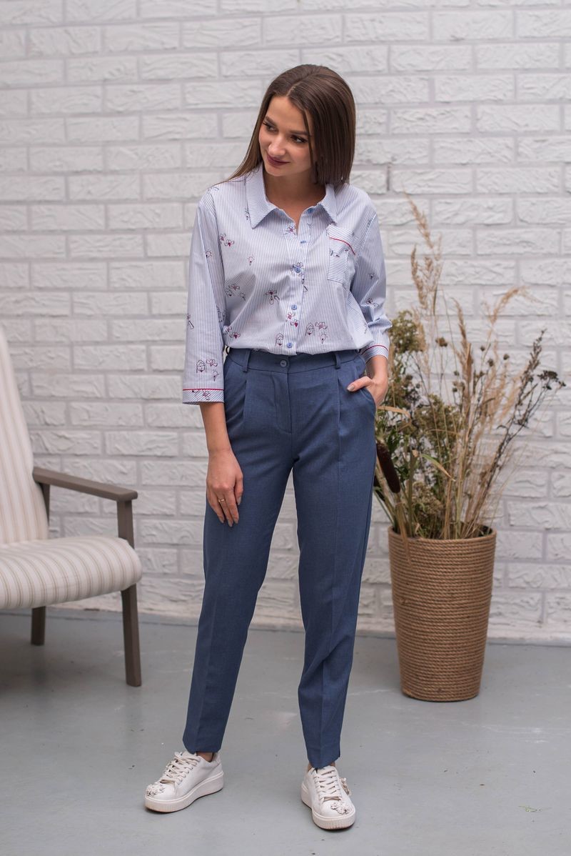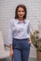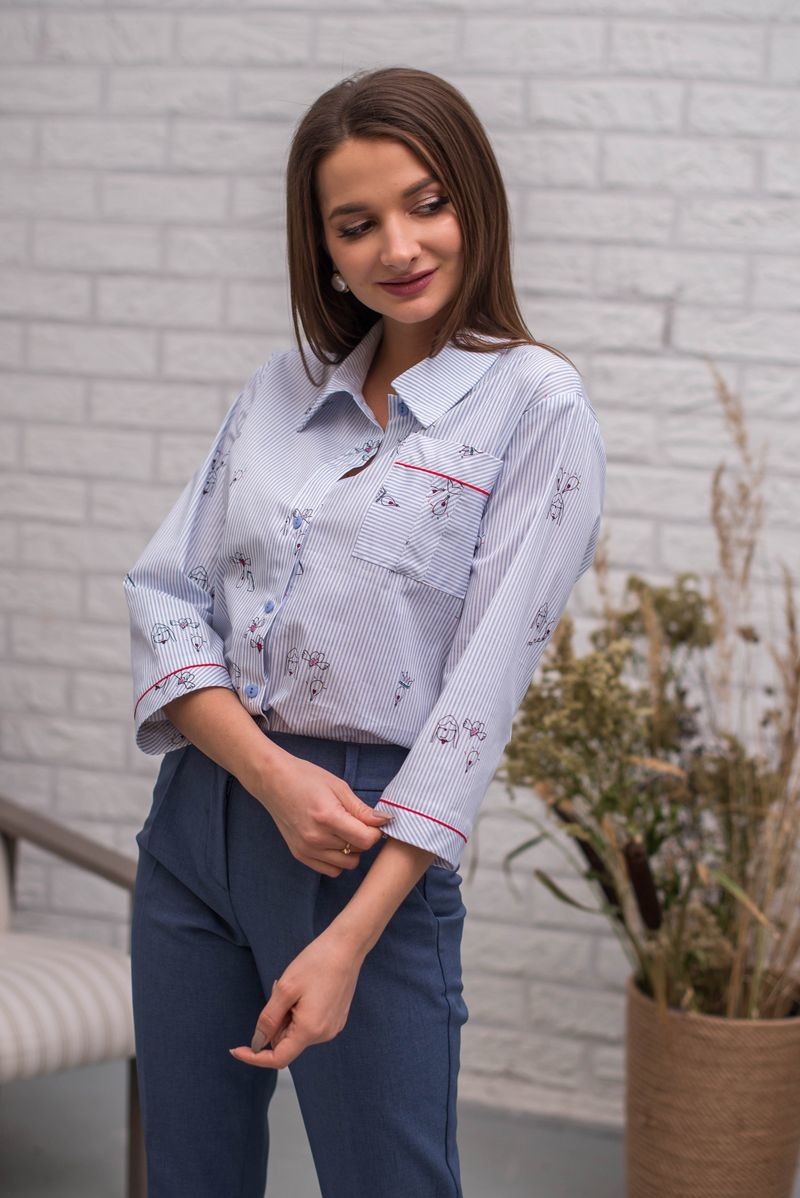 Блузка прямого силуэта на пуговицах. Отложной воротник, втачной рукав, накладной карман на груди. Изделие дополнено декоративным кантом красного цвета.