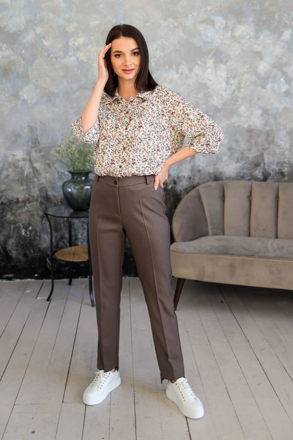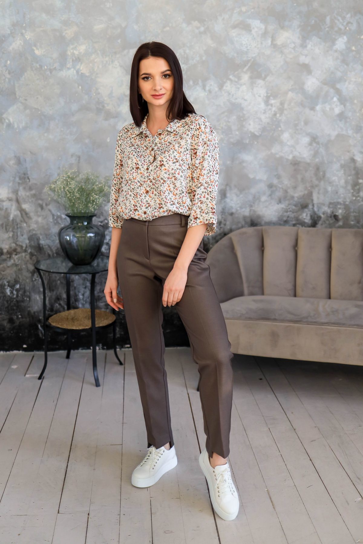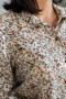 Блузка из штапеля с цветочным принтом. Свободный прямой силуэт, застежка на пуговицы, втачной рукав длиной 3/4. Низ модели закруглен.