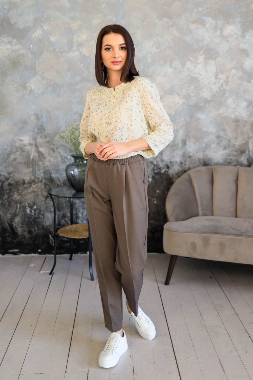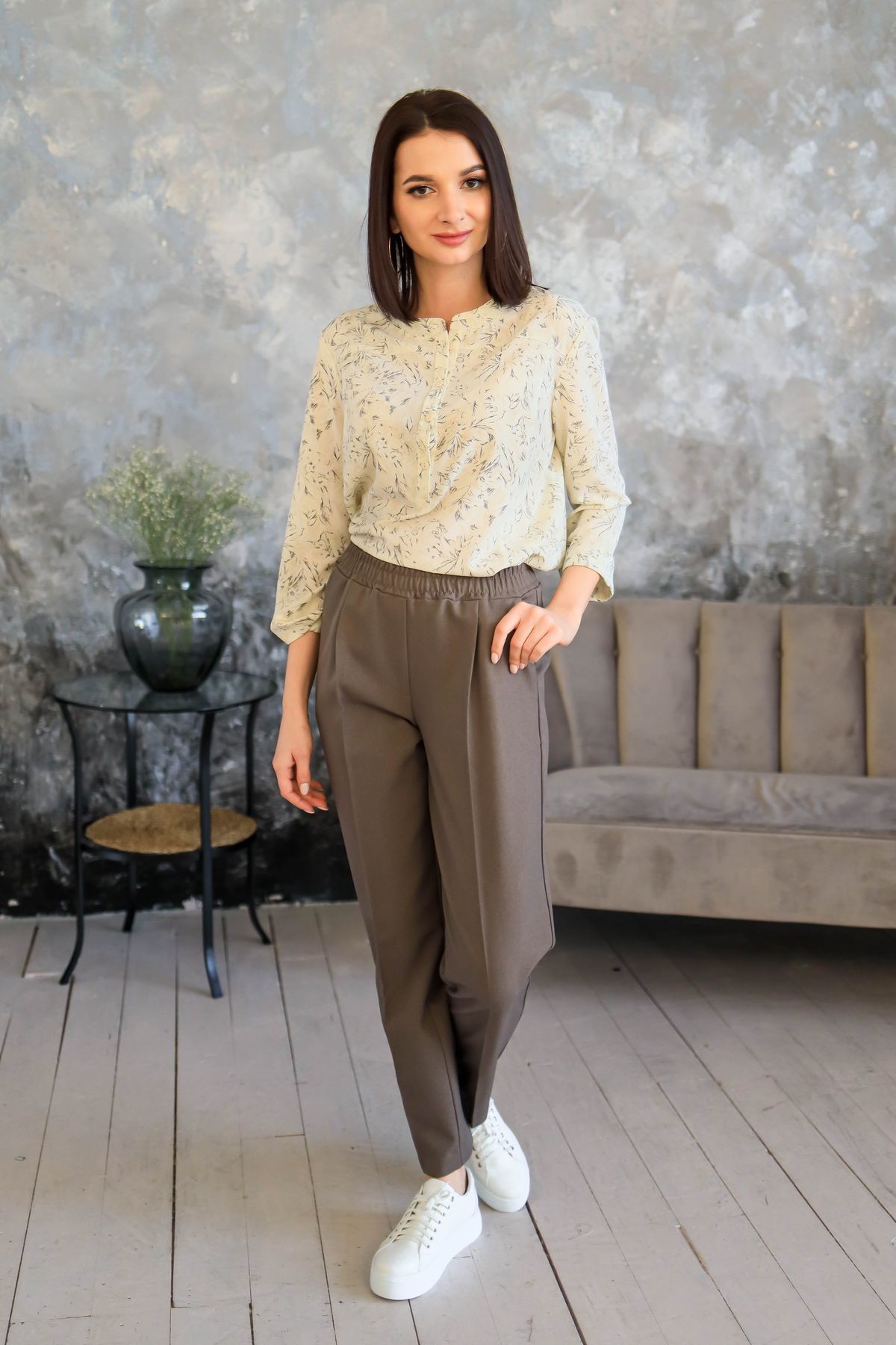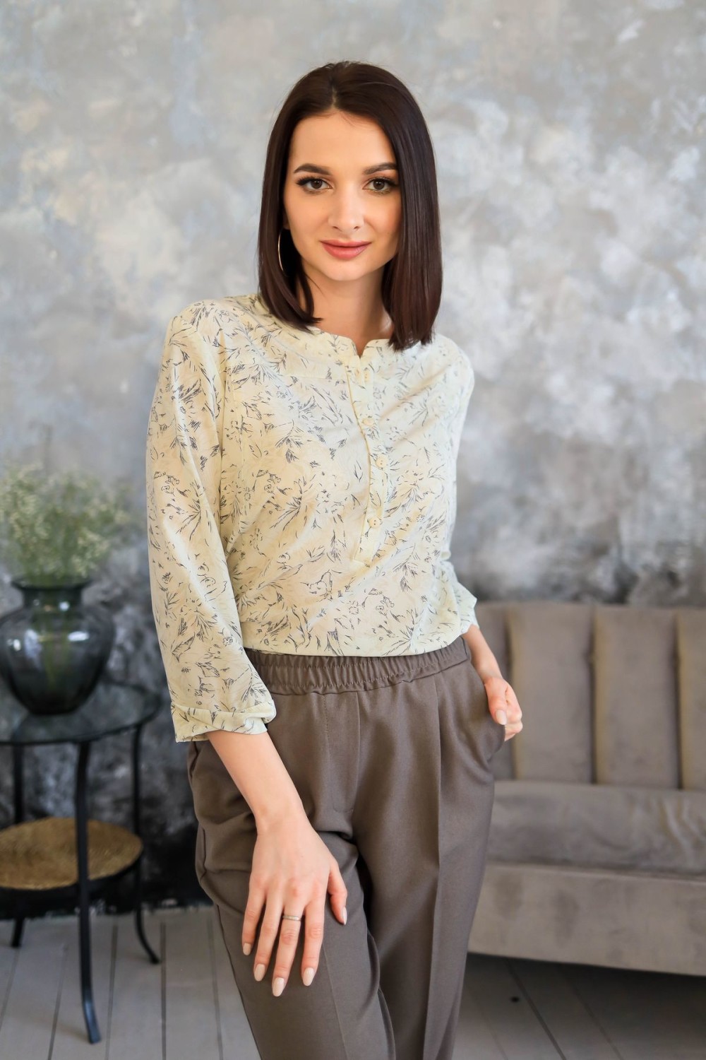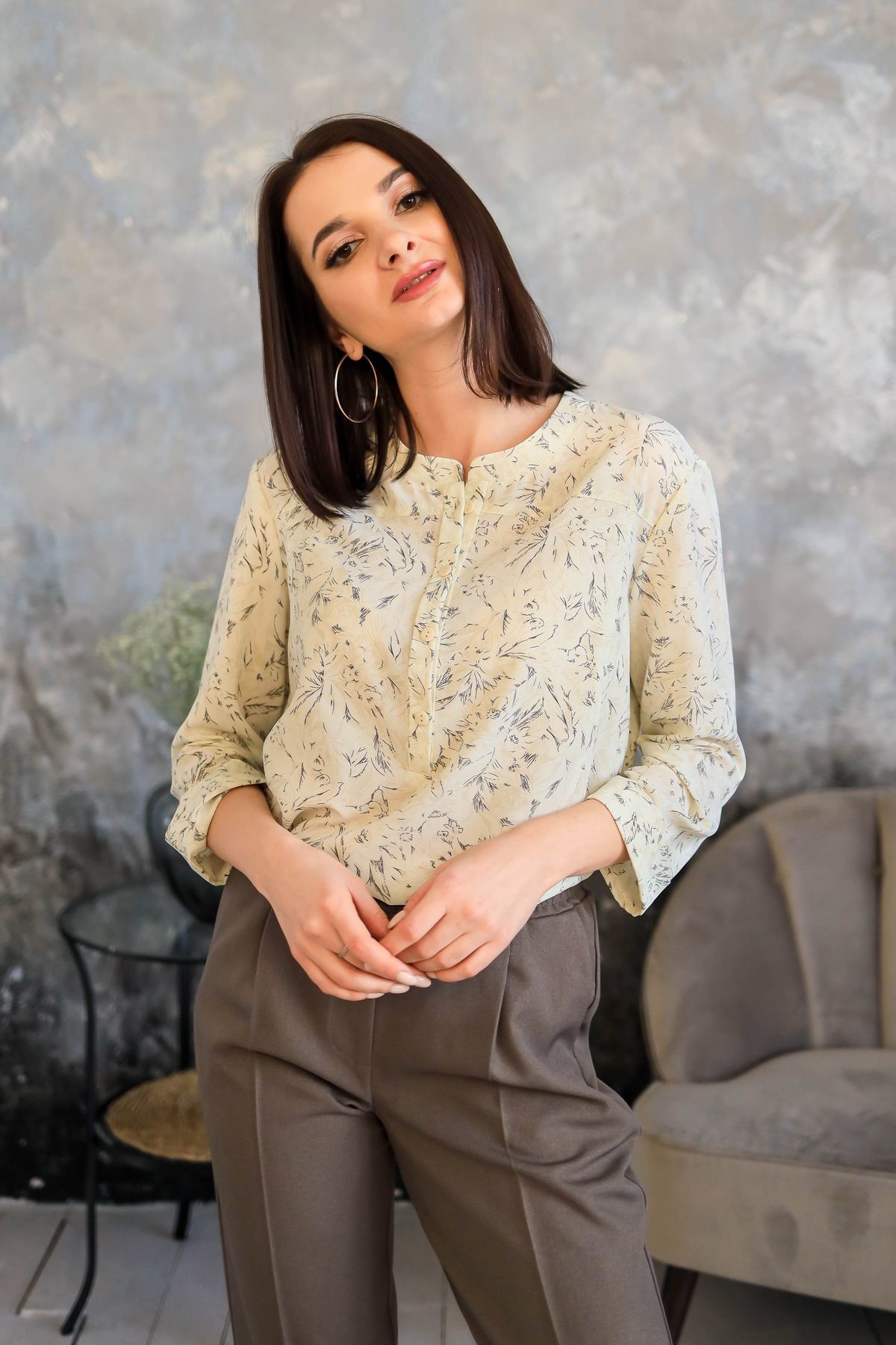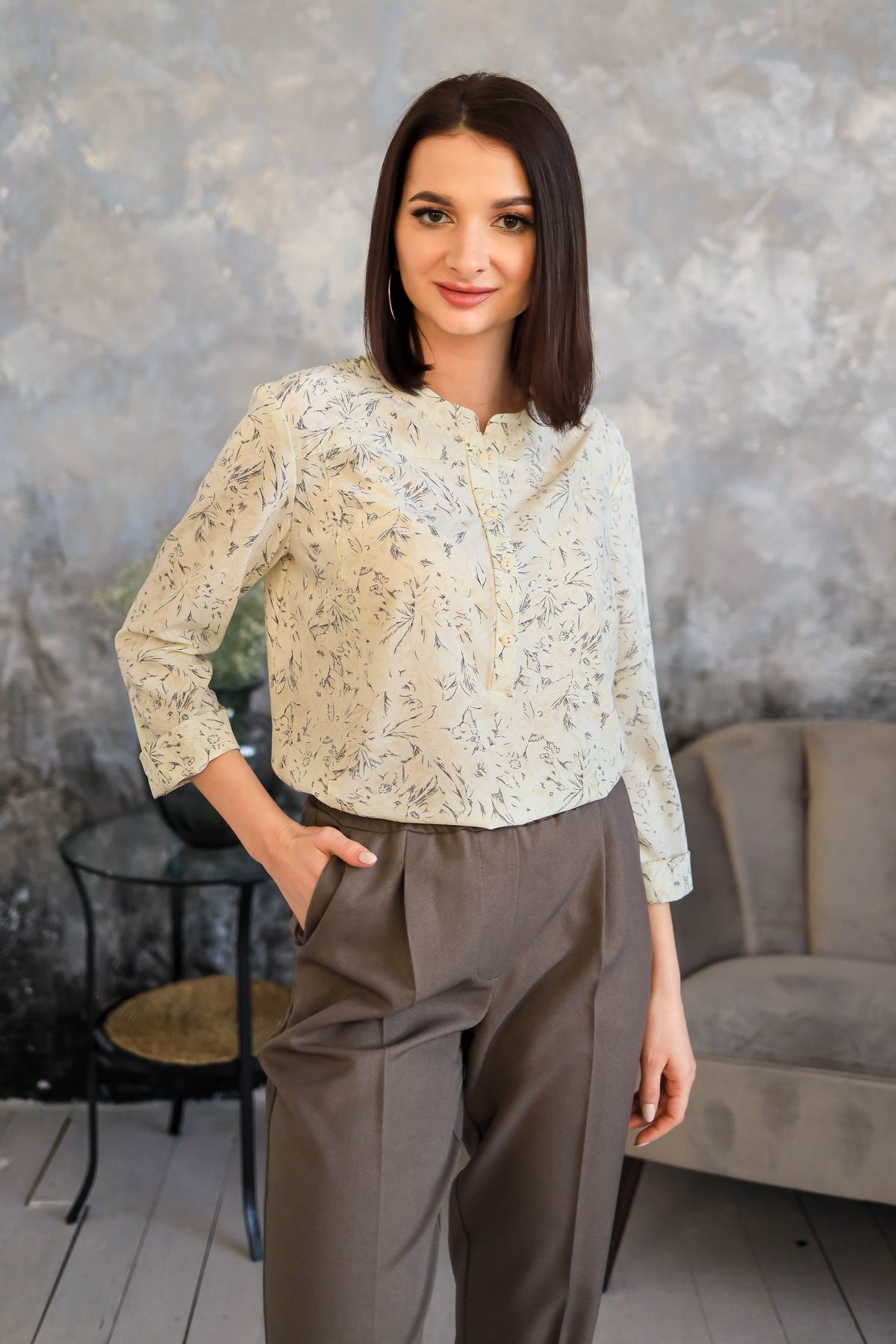 Блузка прямого силуэта. Воротник-стойка, застежка-поло на пуговицы