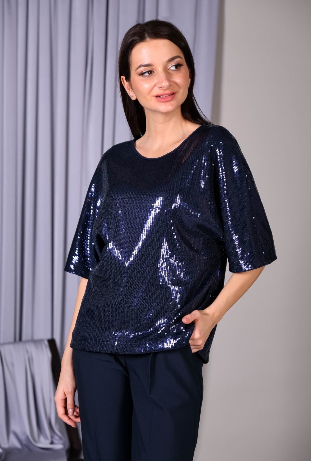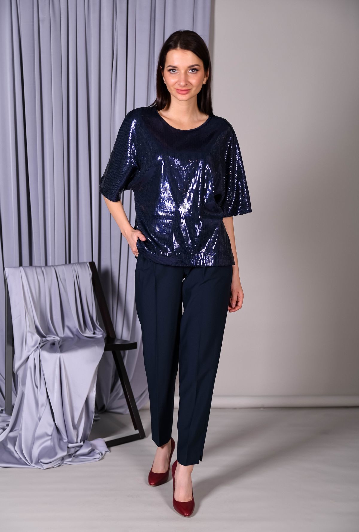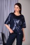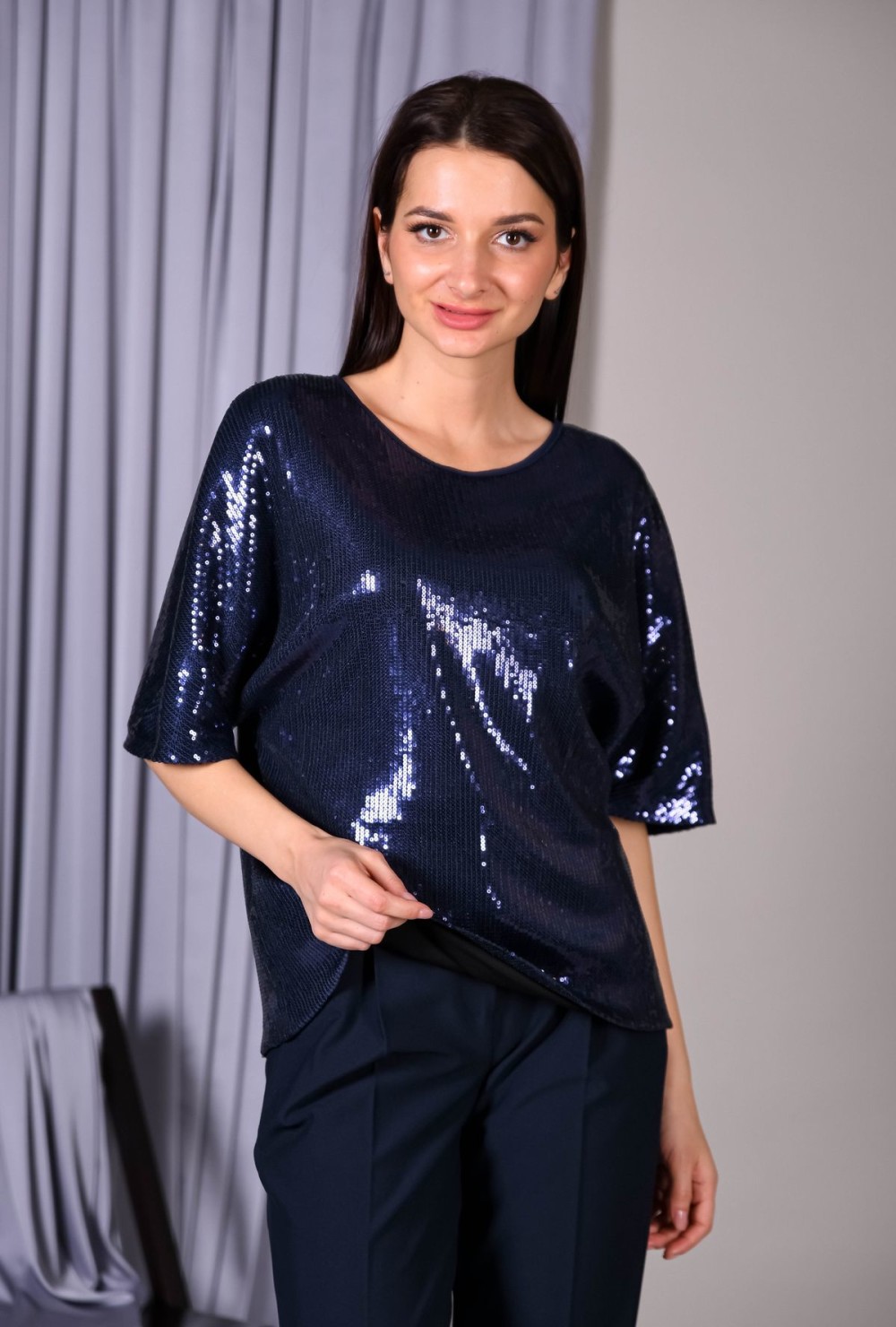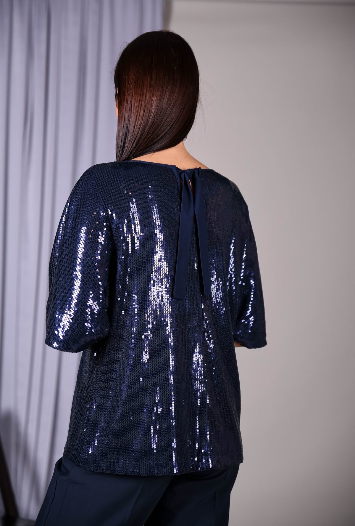 Туника свободного силуэта из материала, расшитого пайетками. Изделие обработано подкладкой из сетки (не колется). Цельнокроенный рукав, на спинке завязки из гладкого полотна аналогичного оттенка.