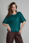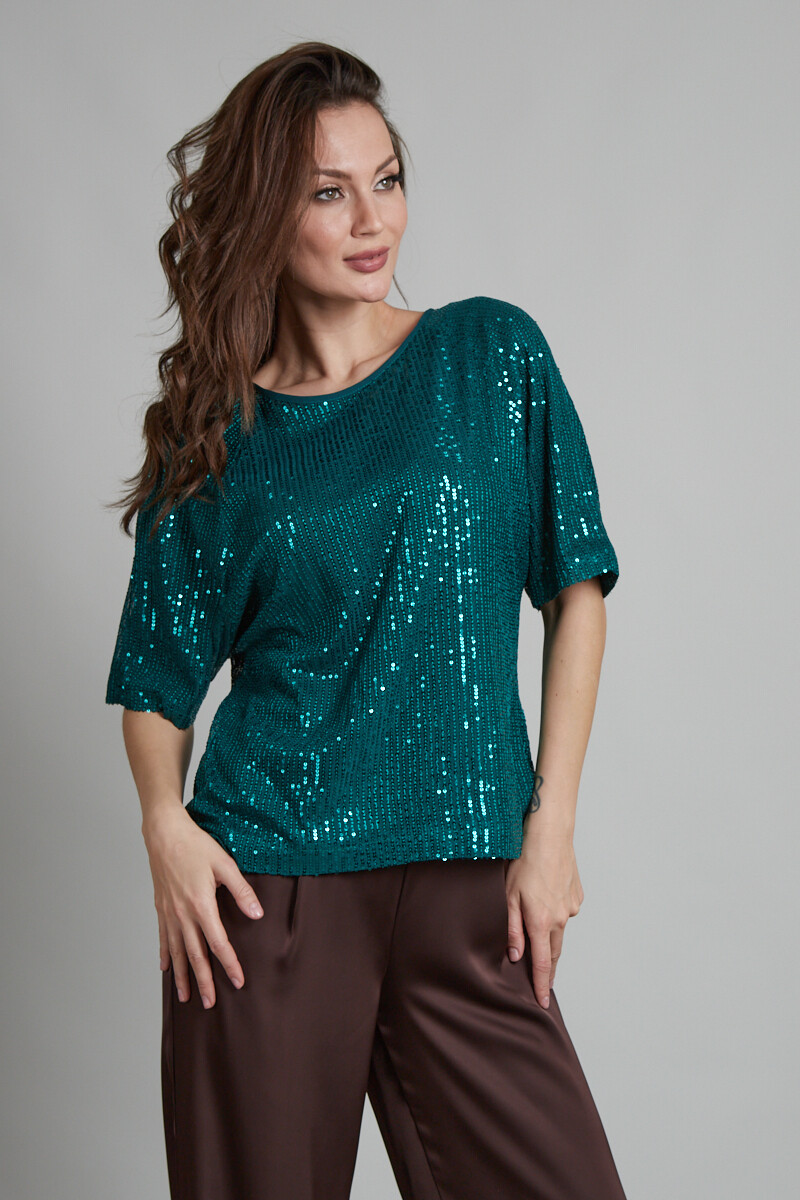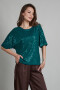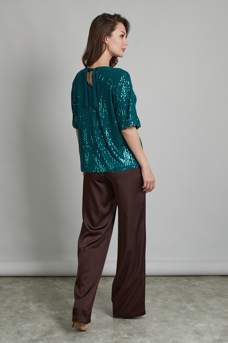 Туника свободного силуэта из материала, расшитого пайетками. Изделие обработано подкладкой из сетки (не колется). Цельнокроенный рукав, на спинке завязки из гладкого полотна аналогичного оттенка.