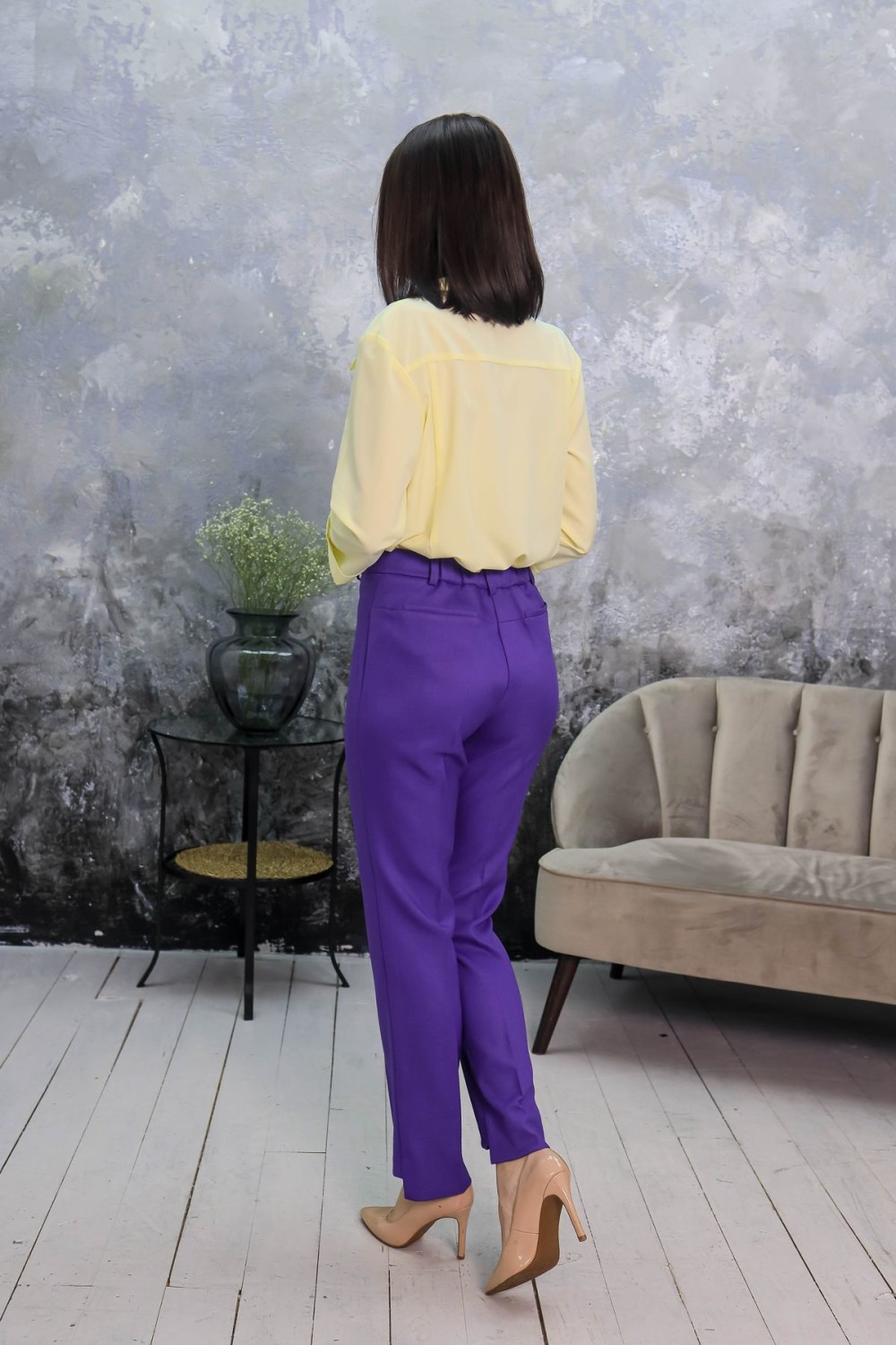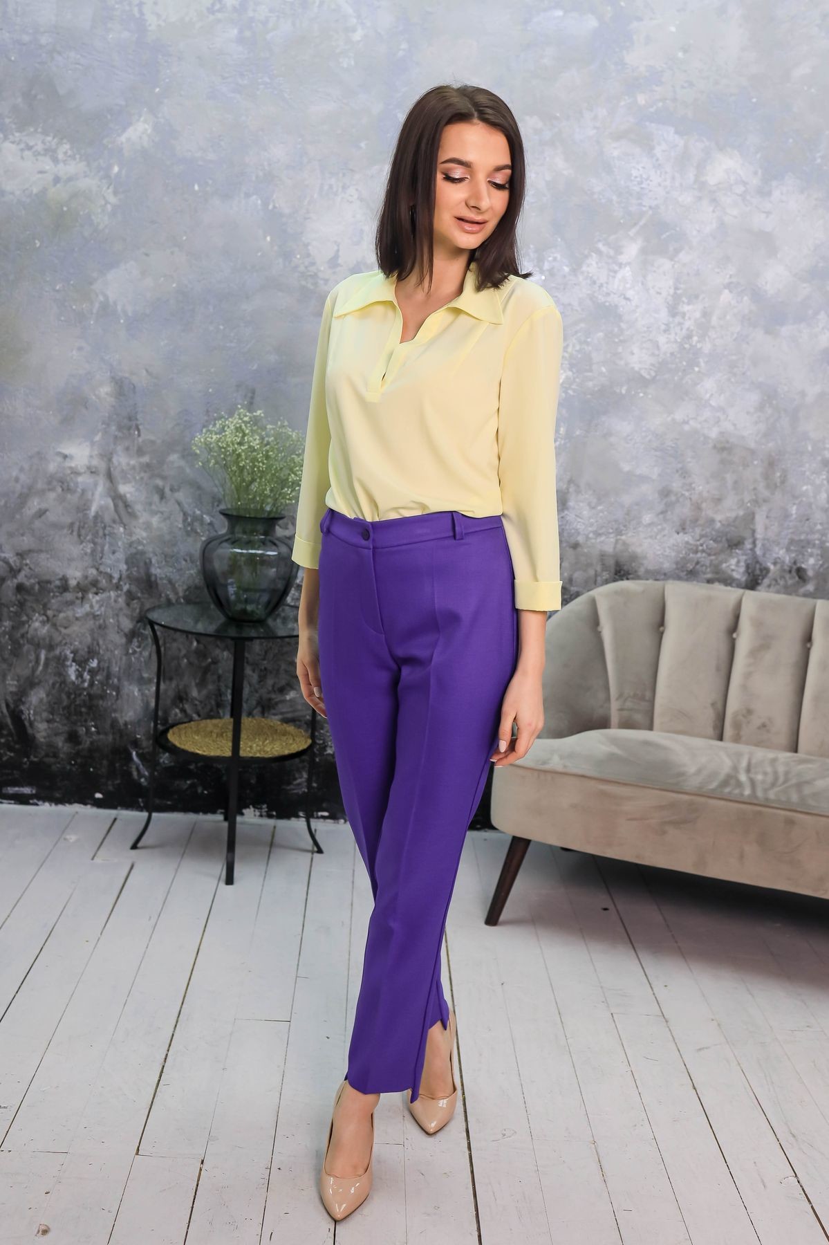 Блузка прямого силуэта. Отложной воротник, вырез горловины-галочка, втачные рукава обработаны отворотами.