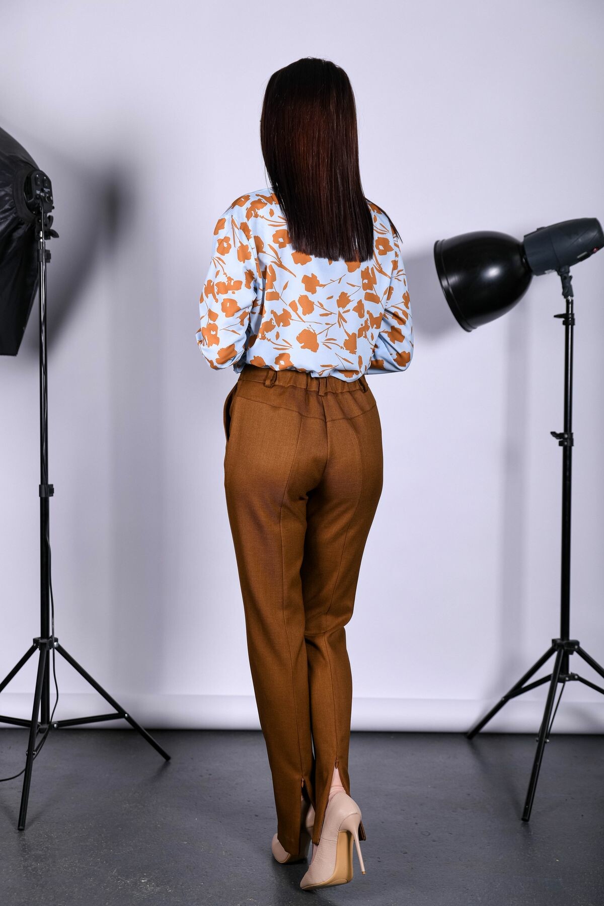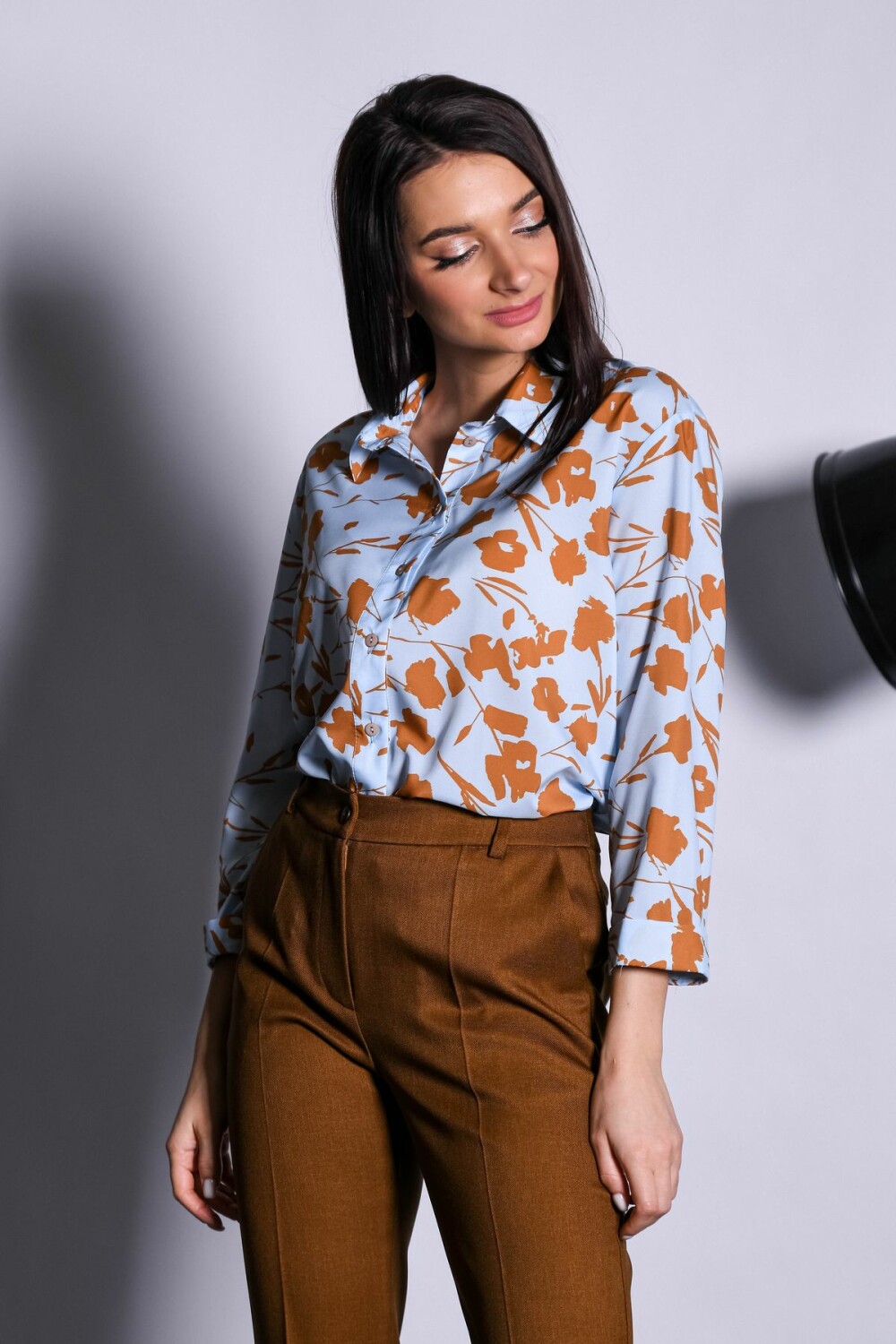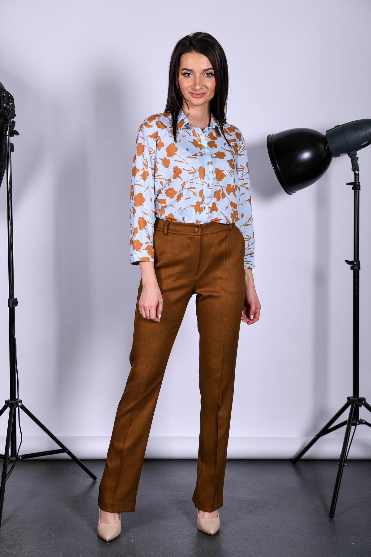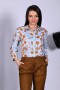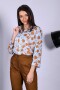 Блузка прямого силуэта. Втачной рукав обработан отворотом, воротник отложной. Застежка на пуговицы по всей длине.