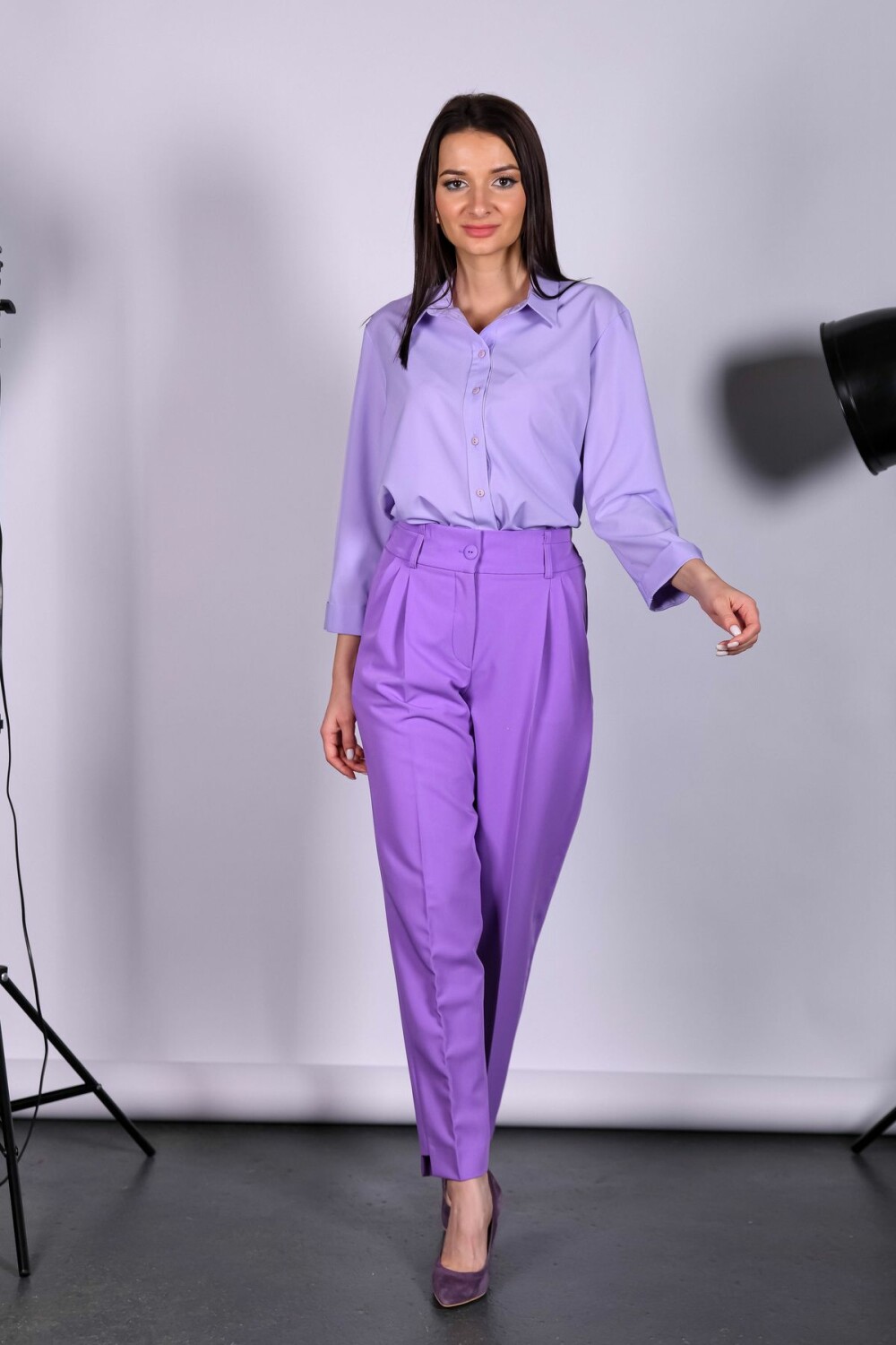 Блузка прямого силуэта. Втачной рукав обработан отворотом, воротник отложной. Застежка на пуговицы по всей длине.