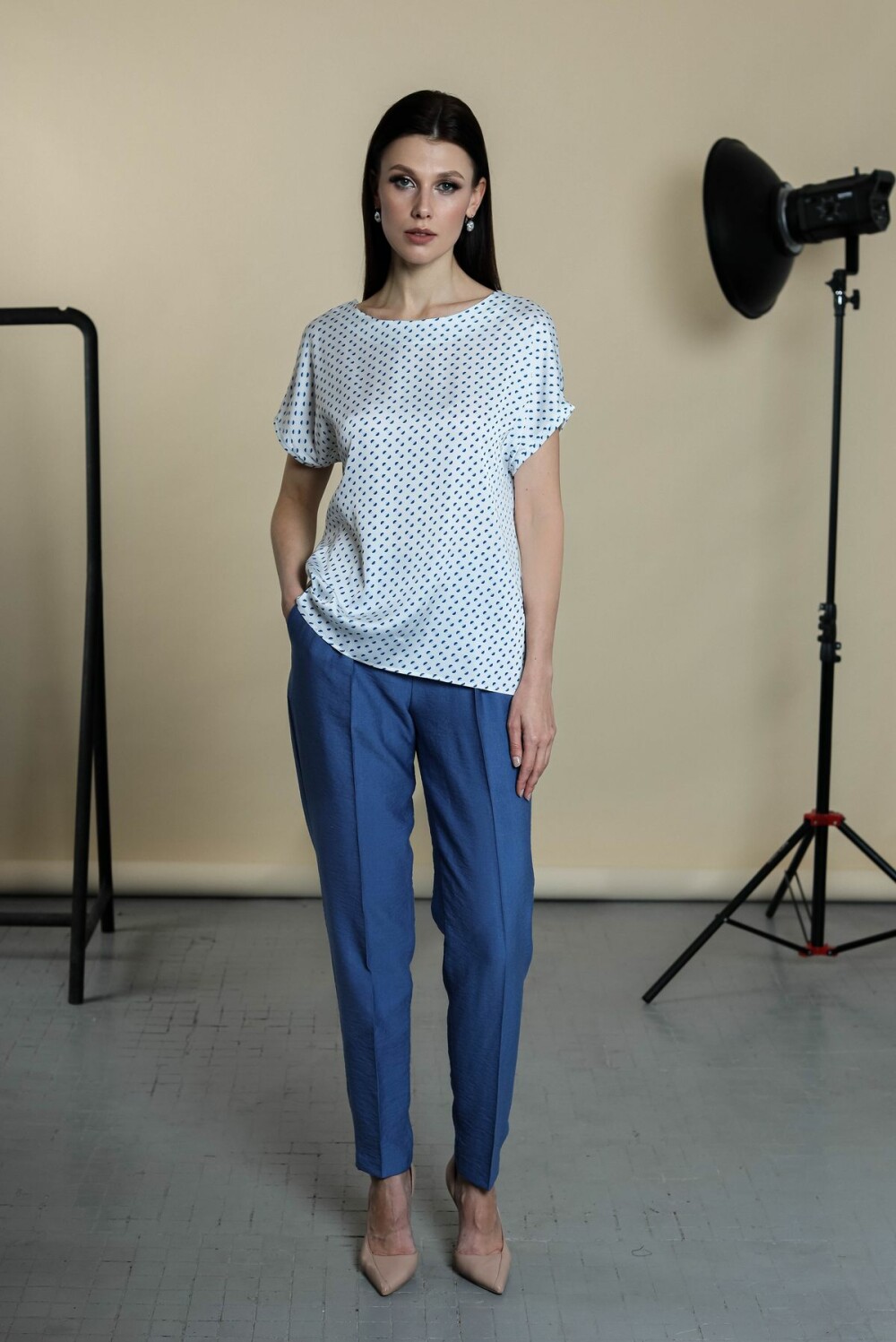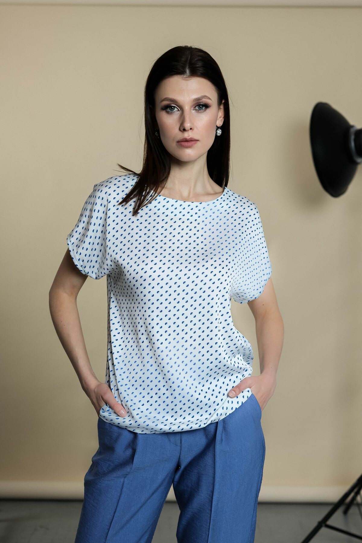 Блузка приталенного силуэта. Цельнокроенный рукав. Без застежки.
