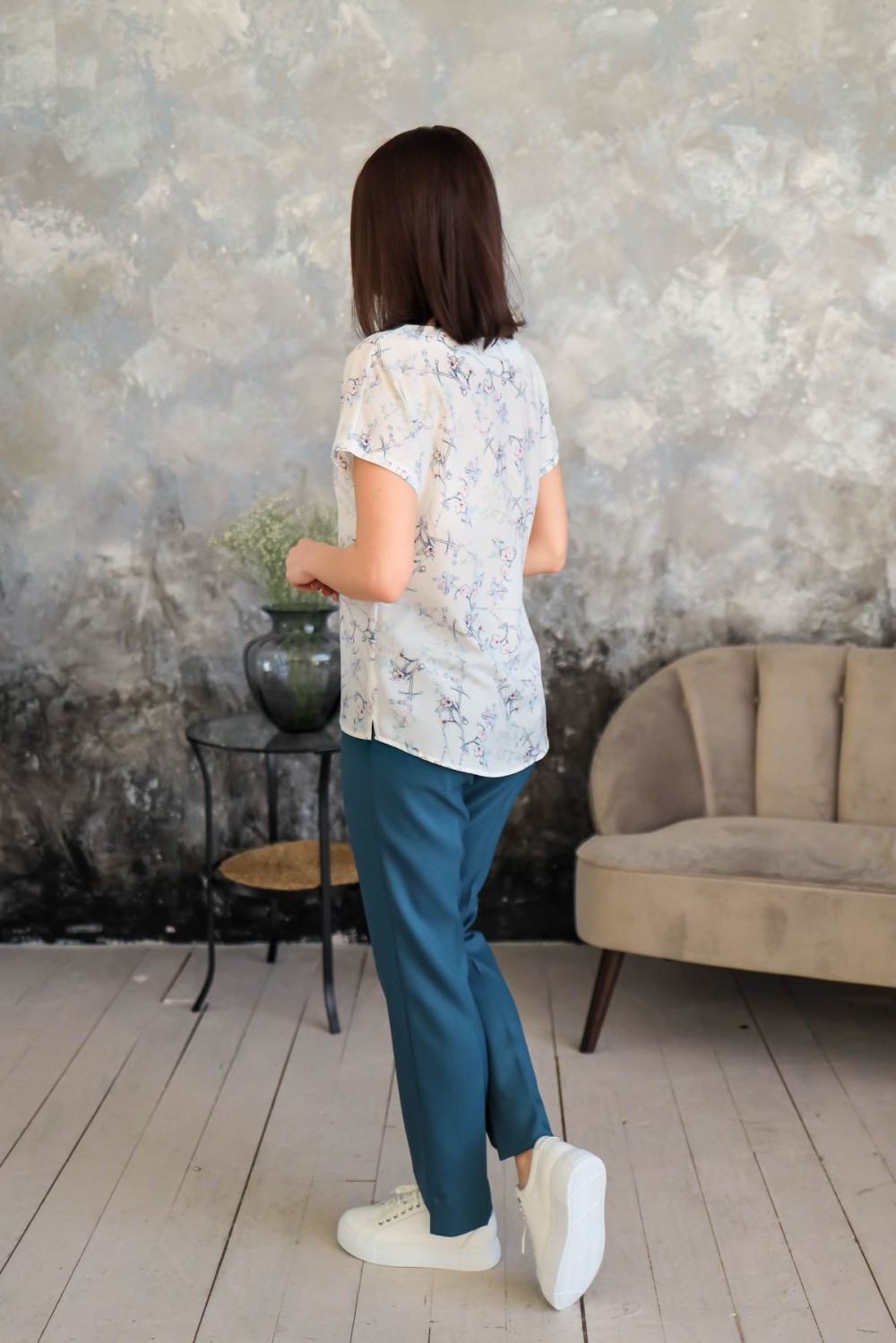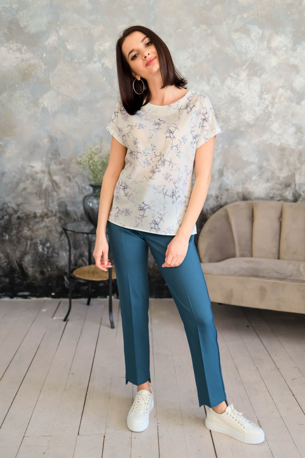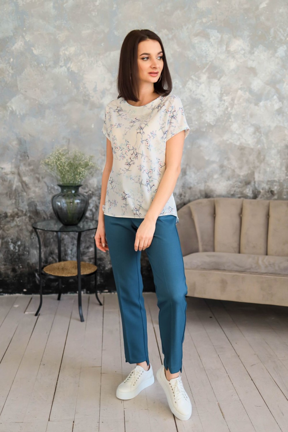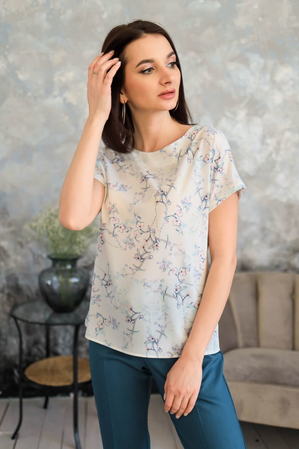 Блузка приталенного силуэта. Цельнокроенный рукав. Без застежки.