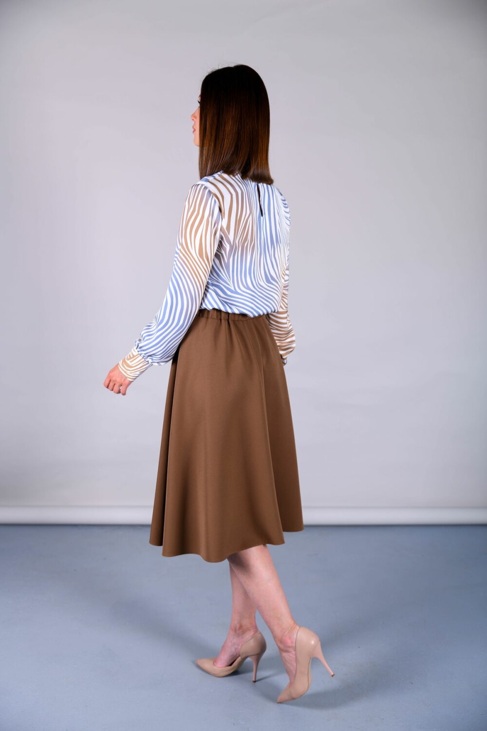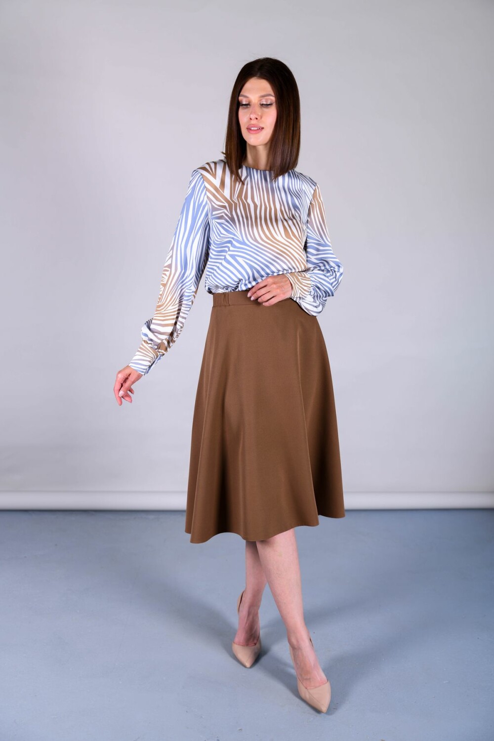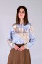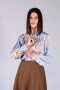 Блузка прямого силуэта. Втачной рукав обработан манжетой. Сзади застежка на петлю и пуговицу.