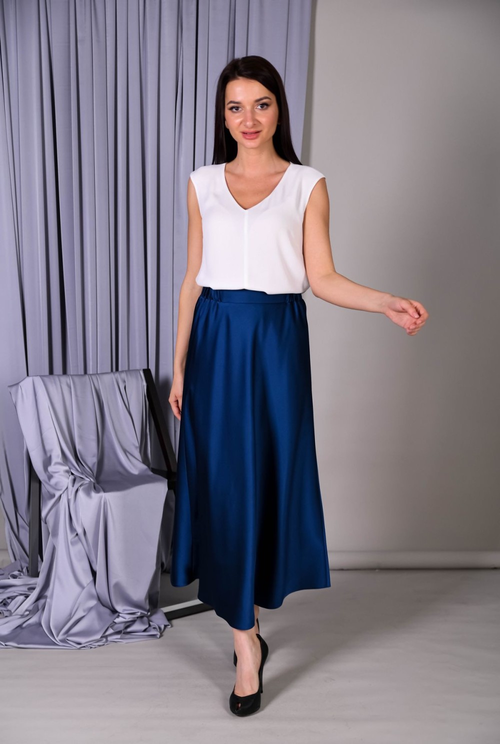Блузка прямого силуэта с V-образным вырезом. Полочка изделия продублирована вторым слоем.
