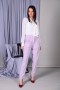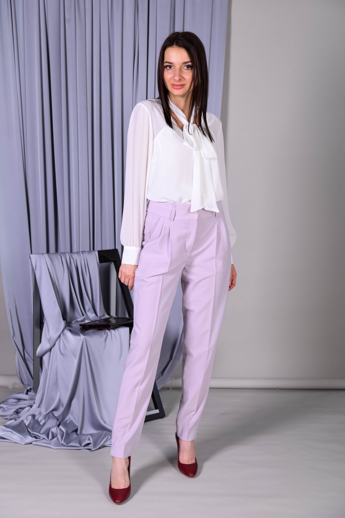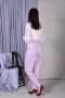 Блузка прямого сводобного силуэта. Втачной рукав обработан манжетой, воротник-стойка, переходящий в ленты из основного полотна. Блузка комплектуется топом на бретелях в тон.