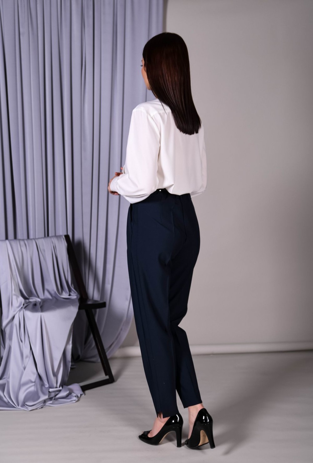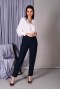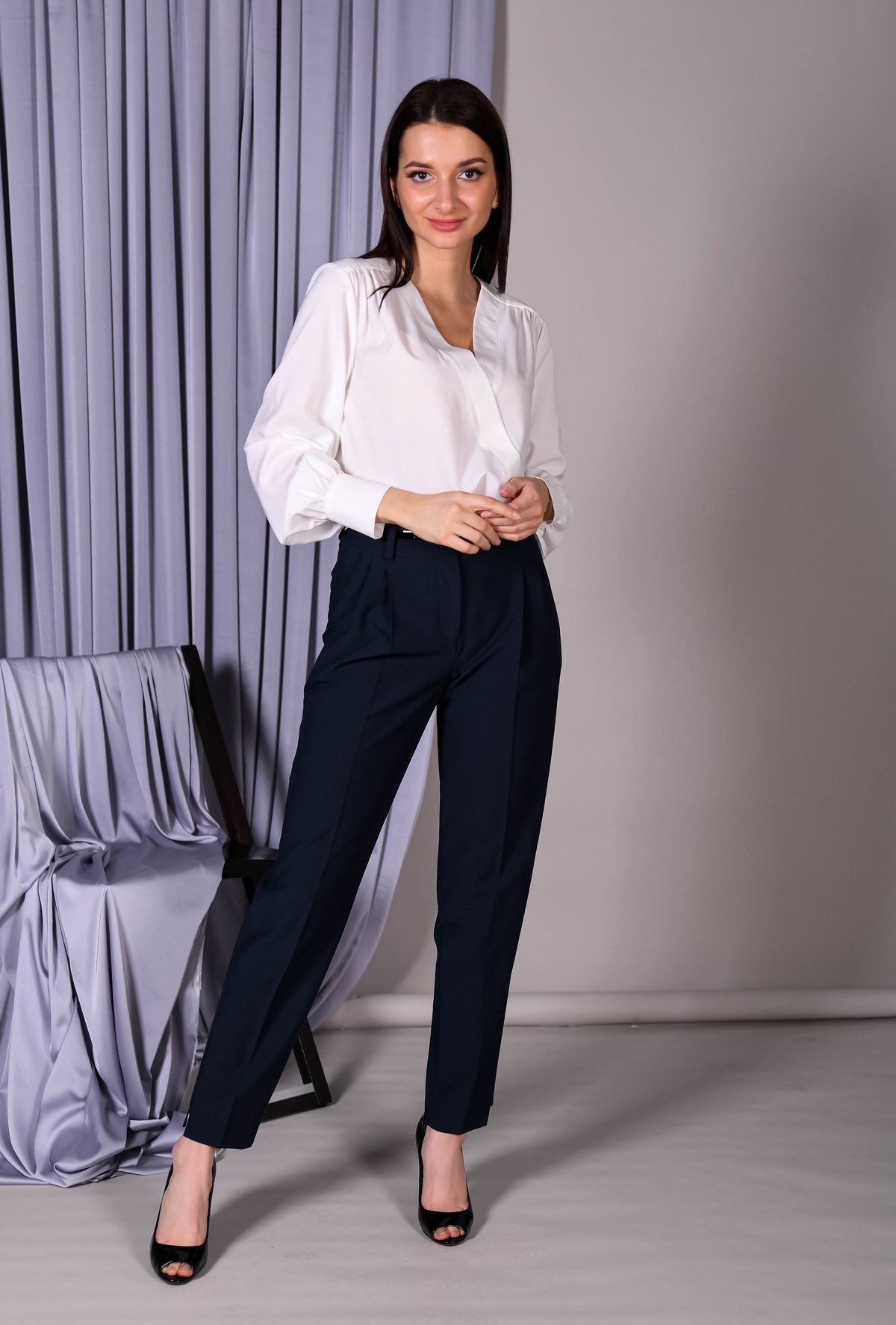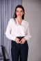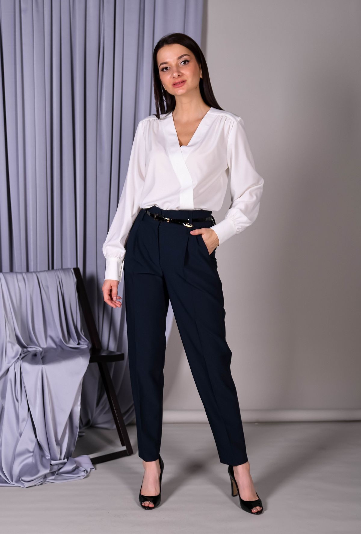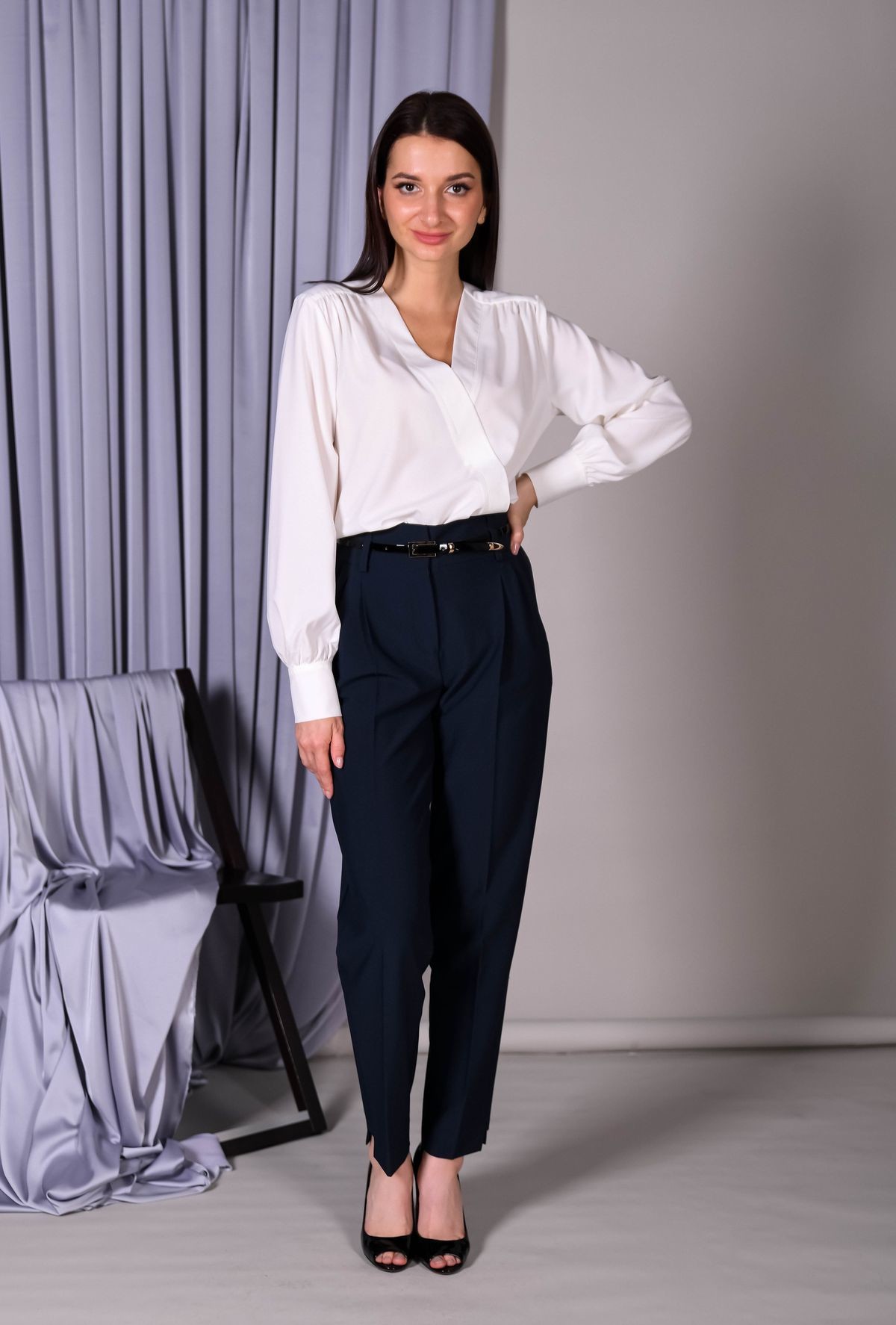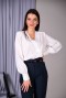 Блузка прямого силуэта с имитацией запАха. Отделка изделия выполнена из контрастного полотна с принтом (в зависимости от расцветки). Длинный втачной рукав обработан манжетой.