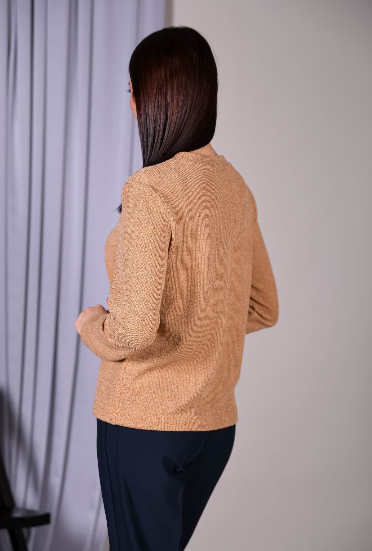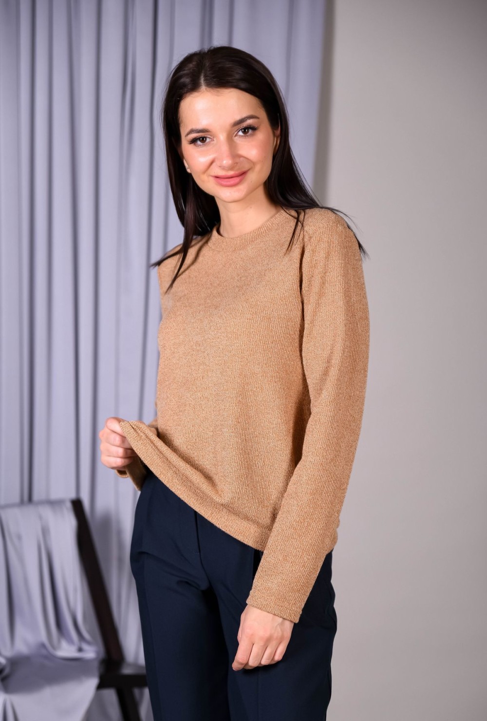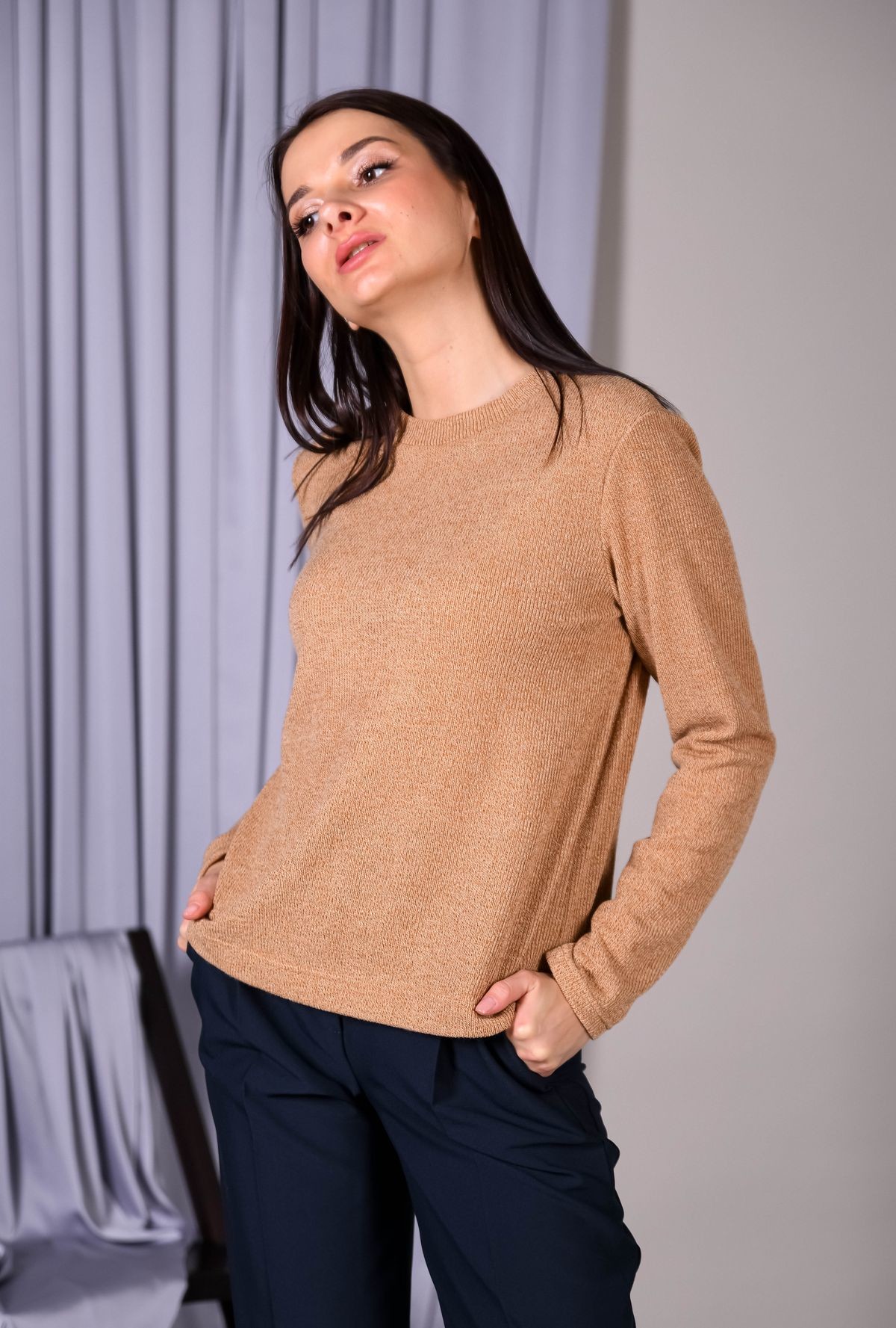 Трикотажный джемпер прямого силуэта. Длинный втачной рукав, без застежки.