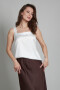 Топ прямого силуэта на широких бретелях, Есть нагрудные выточки.