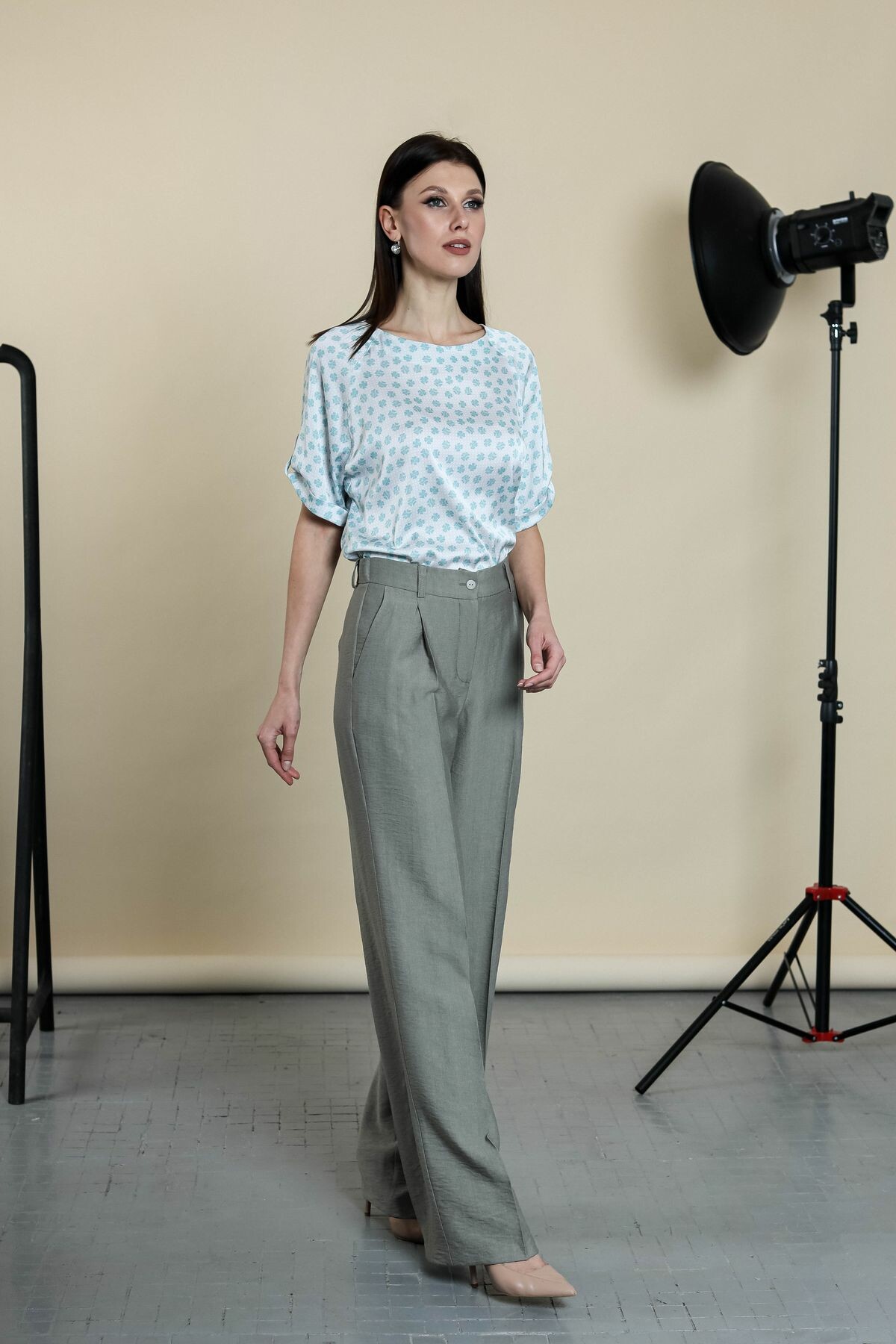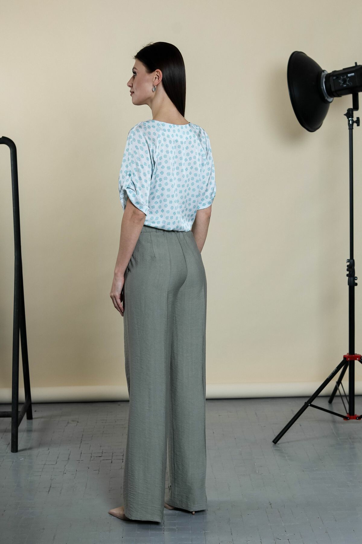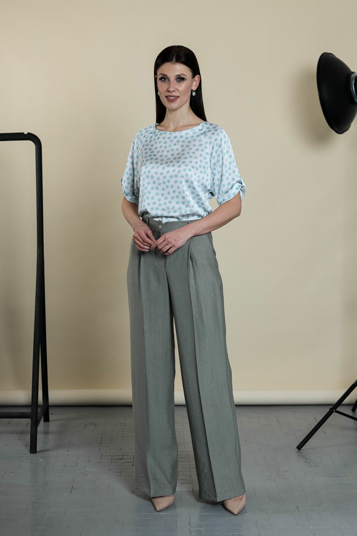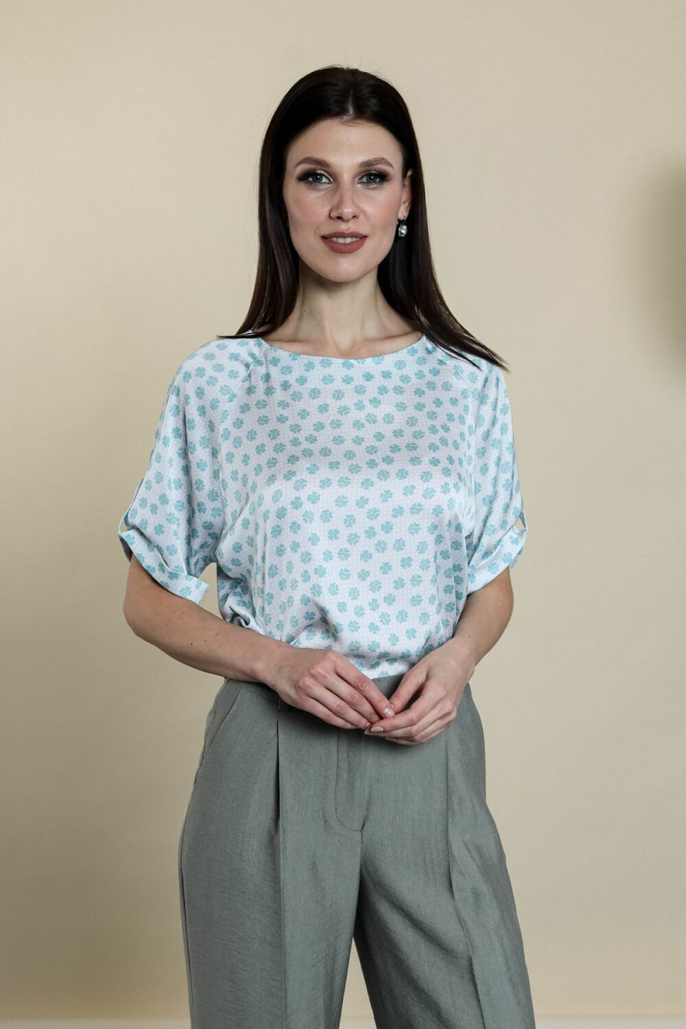 Блузка прямого силуэта. Цельнокроенный рукав с регулировкой на пату обработан отворотом. Боковые швы изделия обработаны разрезами.