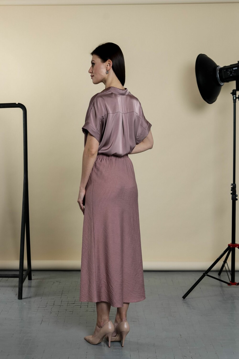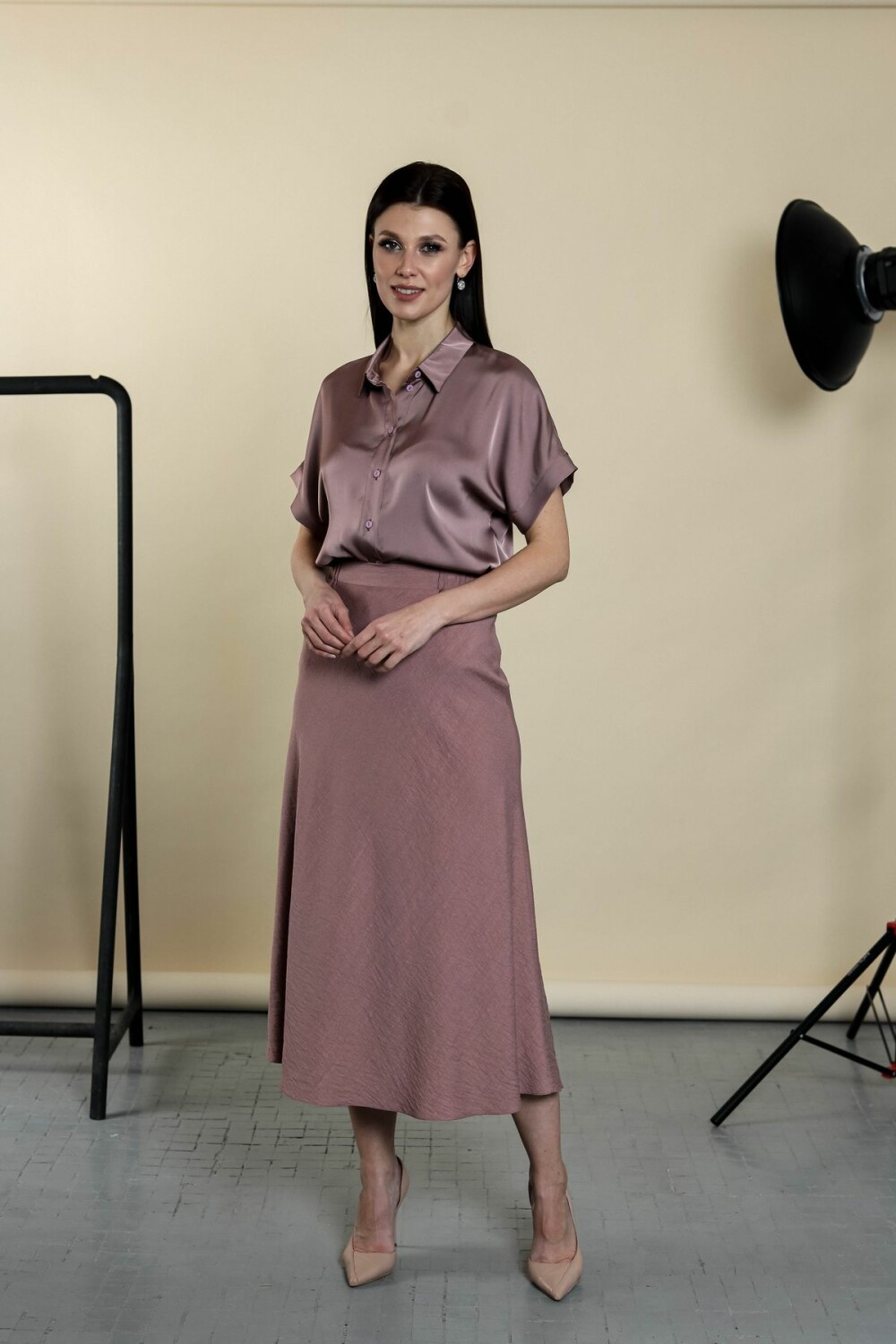 Блузка свободного силуэта. Цельнокроенный рукав, отложной воротник, застежка на пуговицы по всей длине.