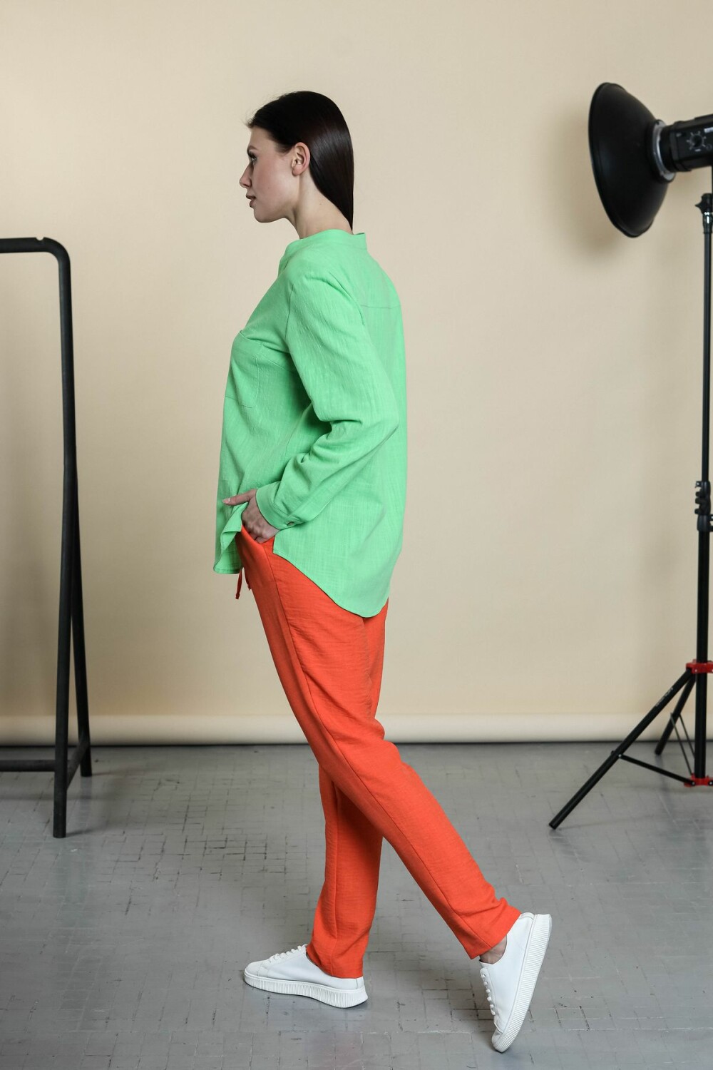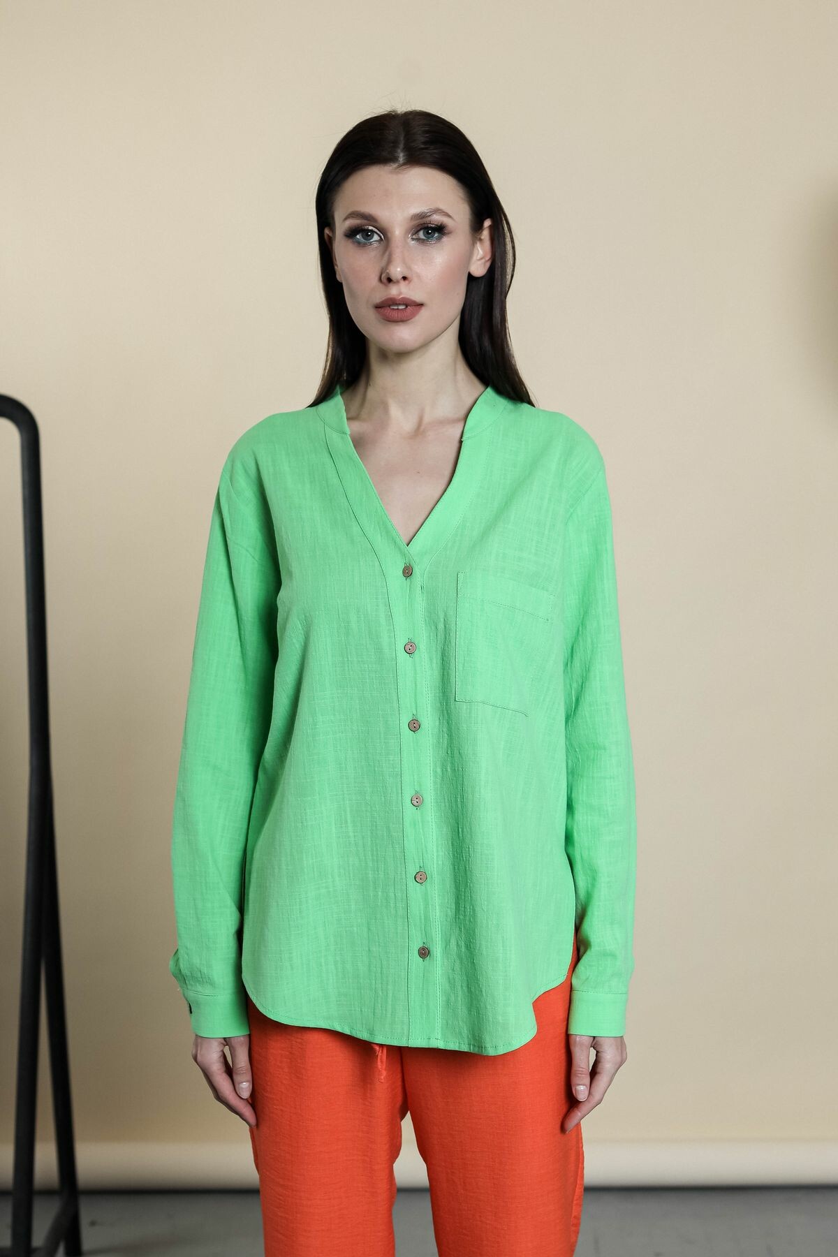 Блузка из хлопка на пуговицах. Втачной рукав обработан манжетой, накладной кармашек.