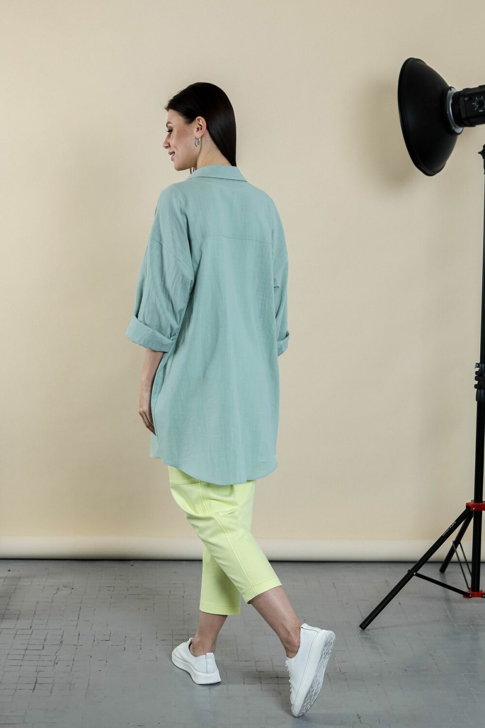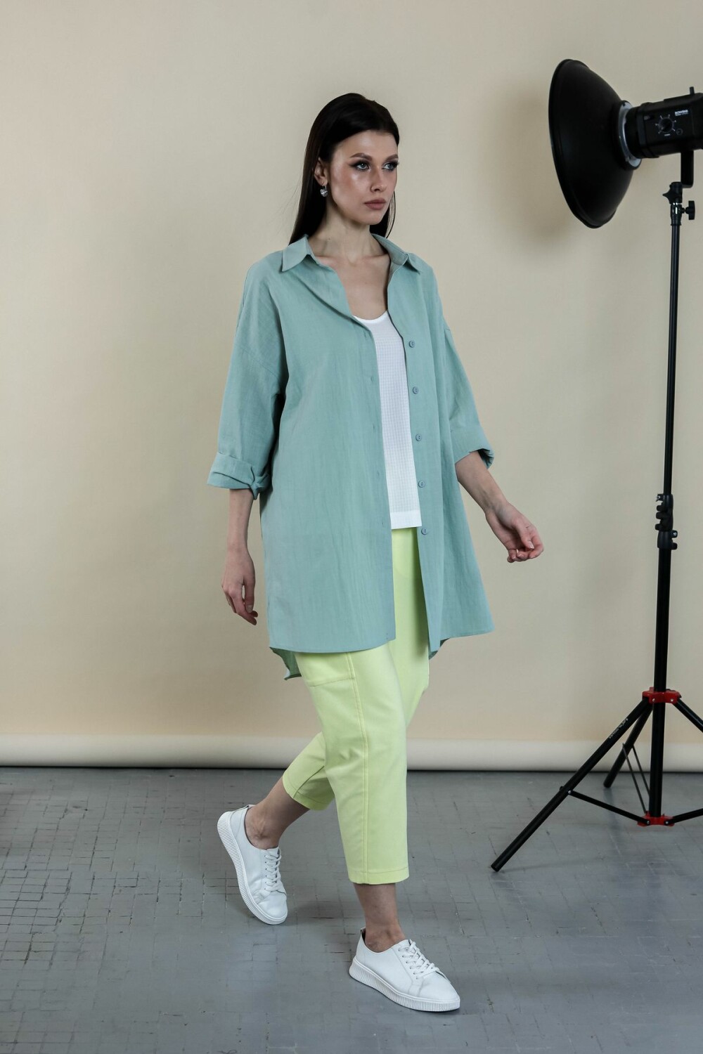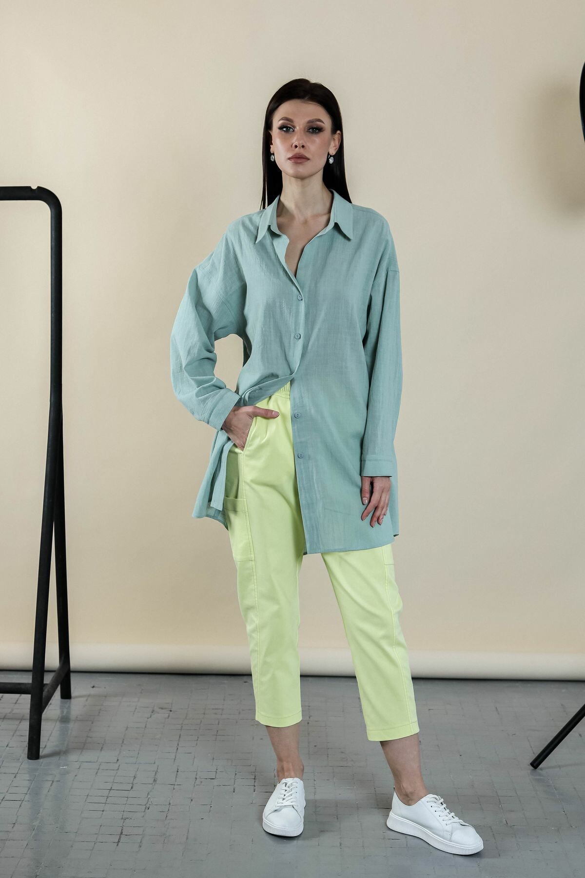 Объемная рубашка-оверсайз. Длинный рукав, отложной воротник, застежка на пуговицы по всей длине.