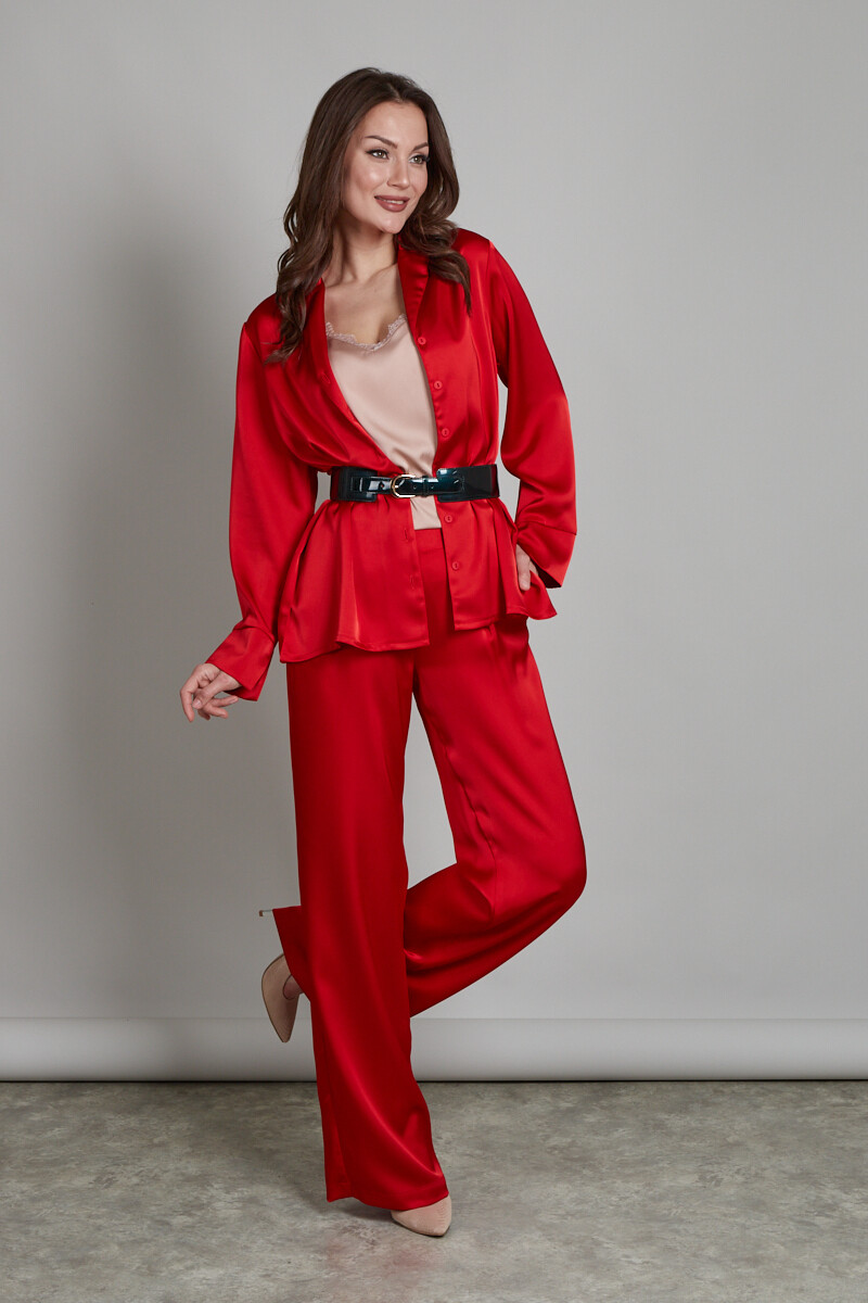 Блуза из атлас-сатина с английским воротничком. Застежка не пуговицы. Низ рукава обработан манжетом с разрезом.