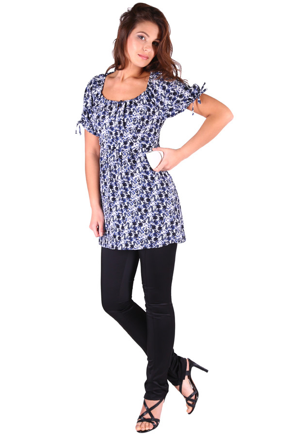 Туника из 100% тонкой вискозы с цветочным принтом, подрезная под грудью с небольшой сборочкой.