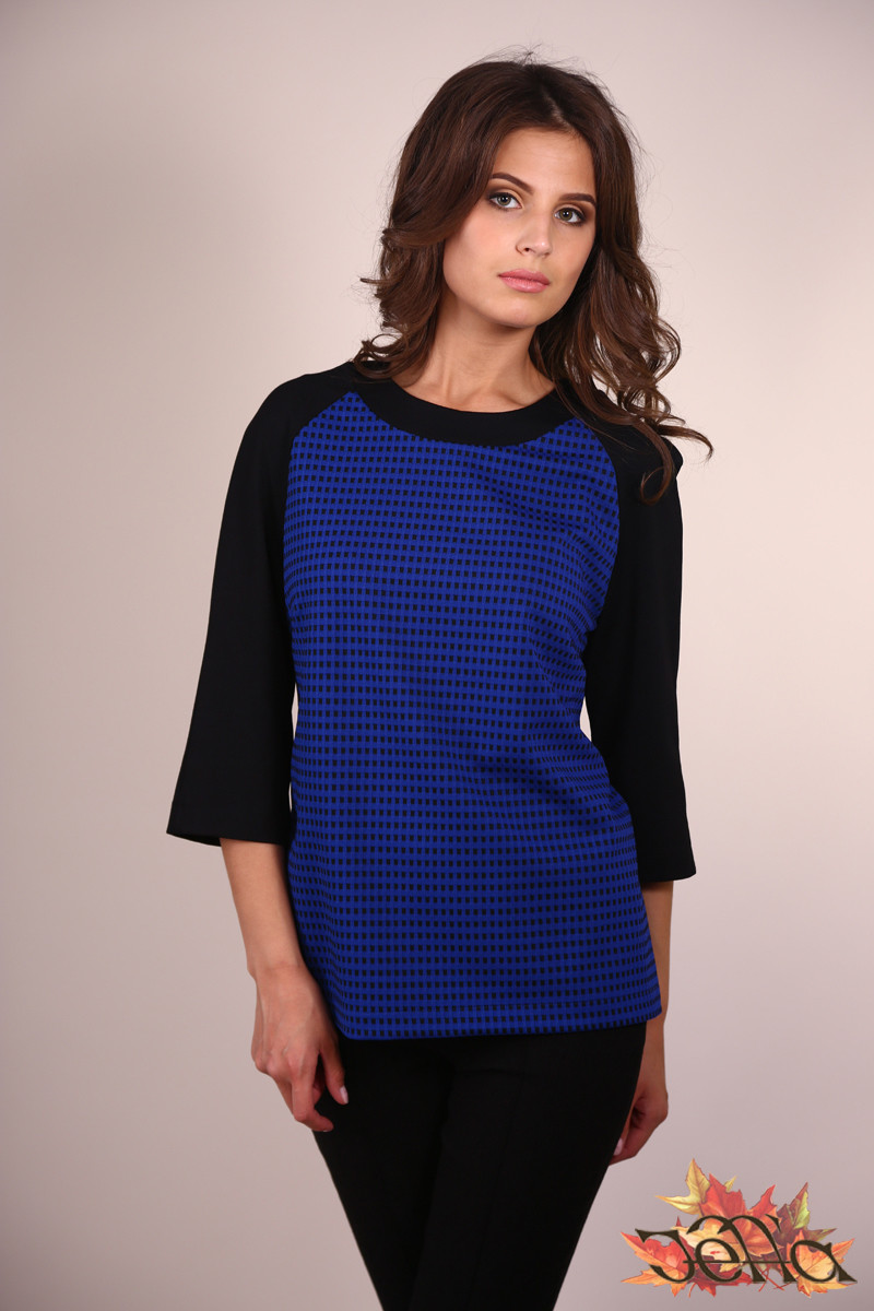 Джемпер из плотного джерси с рукавом реглан. Полочка и спинка из отделочного полотна, рукава черные, длиной 3/4. Силуэт прямой. Отлично смотрится с легинсами и брюками.