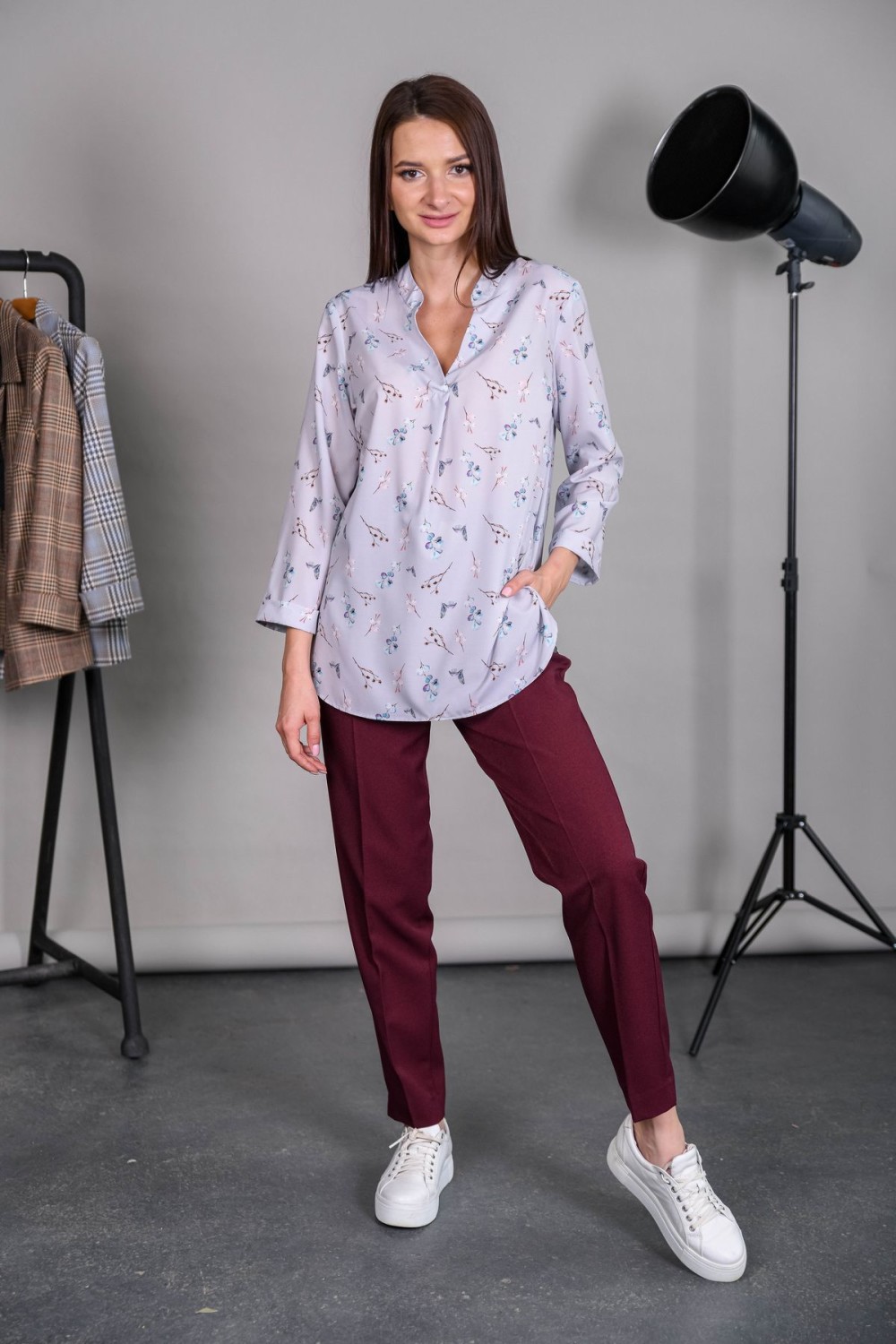 Туника прямого силуэта. Втачной рукав обработан отворотом.