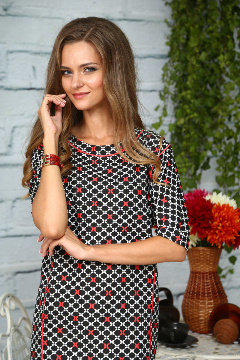 Длина рукава до локтя.В рельефные швы и по горловине вставлен кант отделочного цвета.