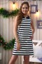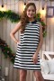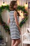 p>Очаровательное платье в полоску с декоративным воротничком темно-синего цвета.