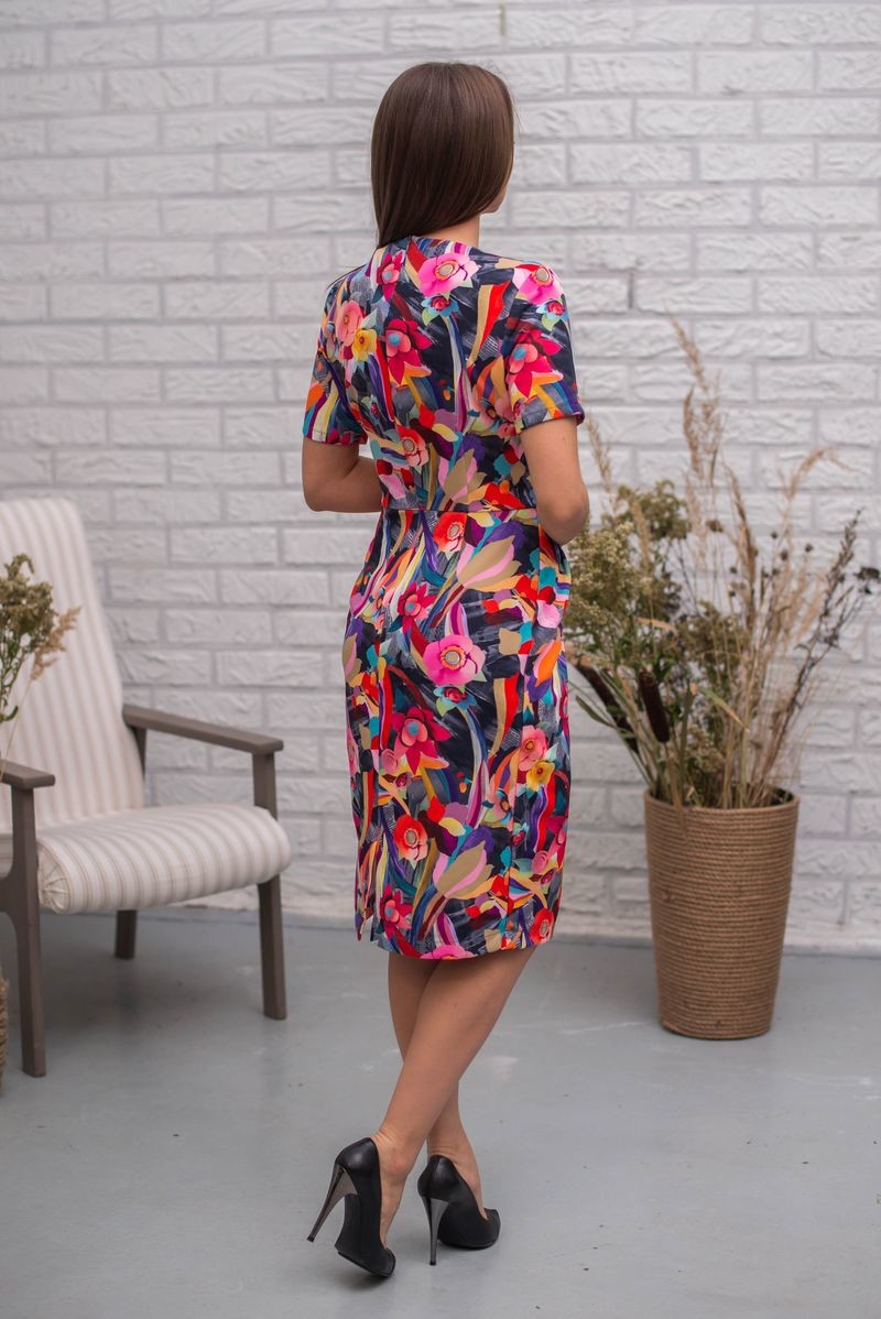 Платье-футляр длиной до колена. Модель отрезная по талии. Застежка сзади на потайную молнию, разрез. Лаконичное за счет силуэта и эффектное за счет полотна, модель смотрится благородно и ярко!