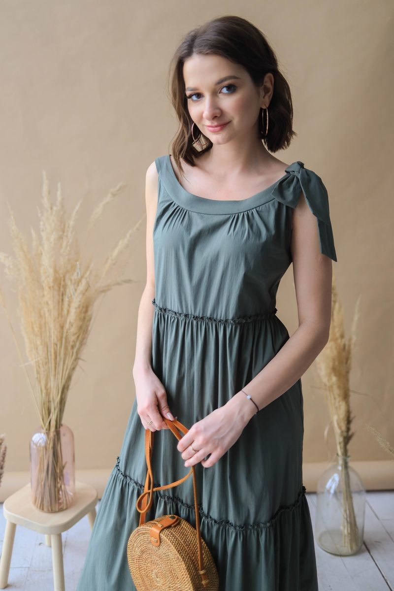 Сарафан из хлопка. Юбка из двух ярусов. В комплекте две ленты из основного полотна, который можно использовать как в качестве декора, так и в виде аксессуара.