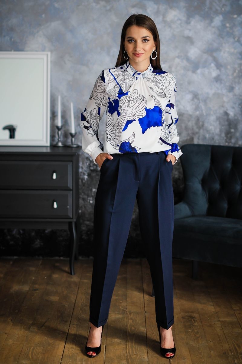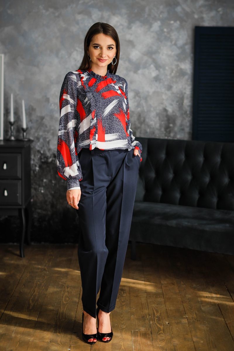 Брюки-бананы средней посадки. Модель свободная по бедрам, чуть заужена к низу. Брючины обработаны отворотами. Застежка спереди на молнию и пуговицу.